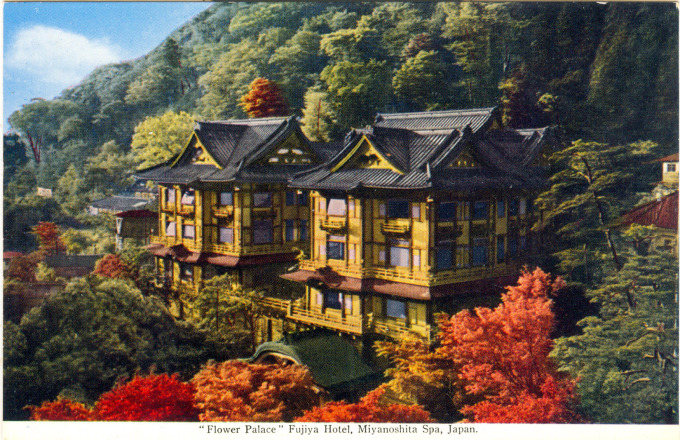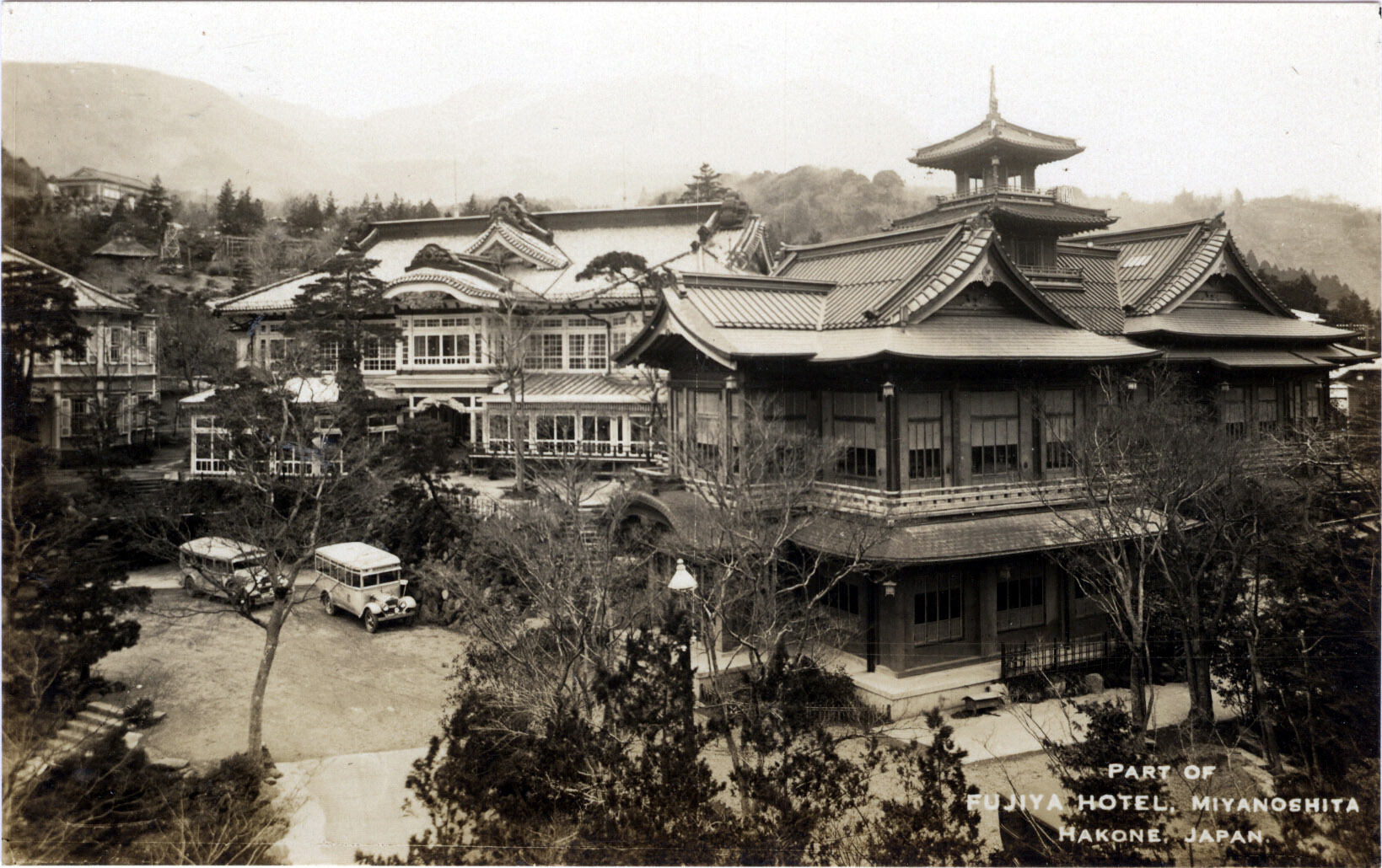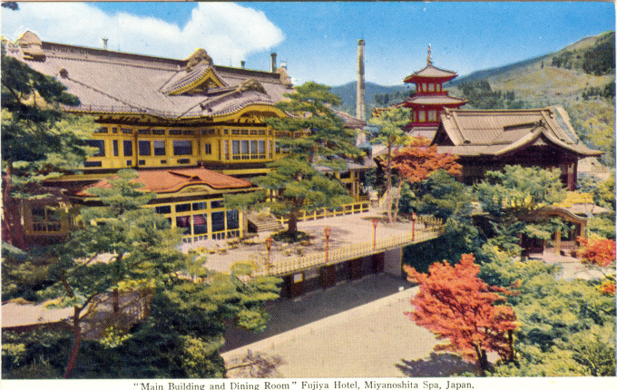 “The hotel Fujiya at Miyanoshita was ablaze with lights, the entire front being nothing but glass. We had delightful apartments with sitting room, bed-room and bath, including a sunken marble tub supplied with naturally hot water from a boiling sulphur spring.