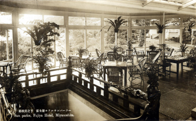 - The sun parlor, Miyanoshita Fuijya Hotel, c. 1930.