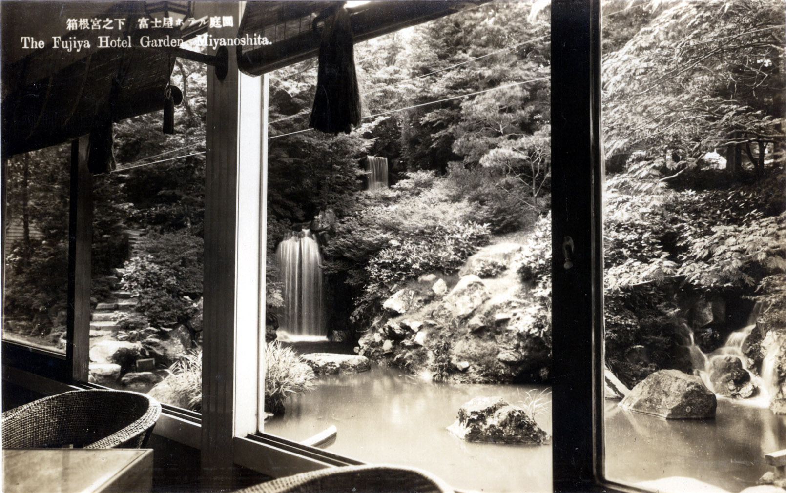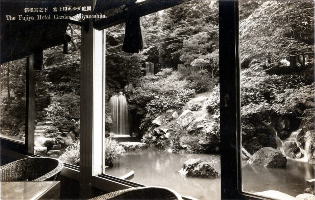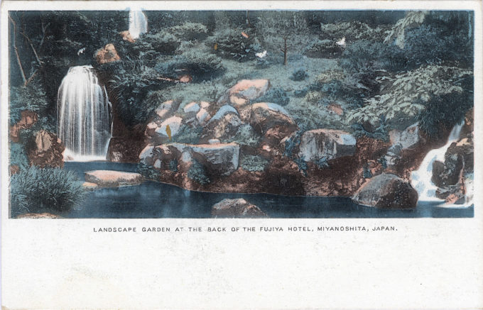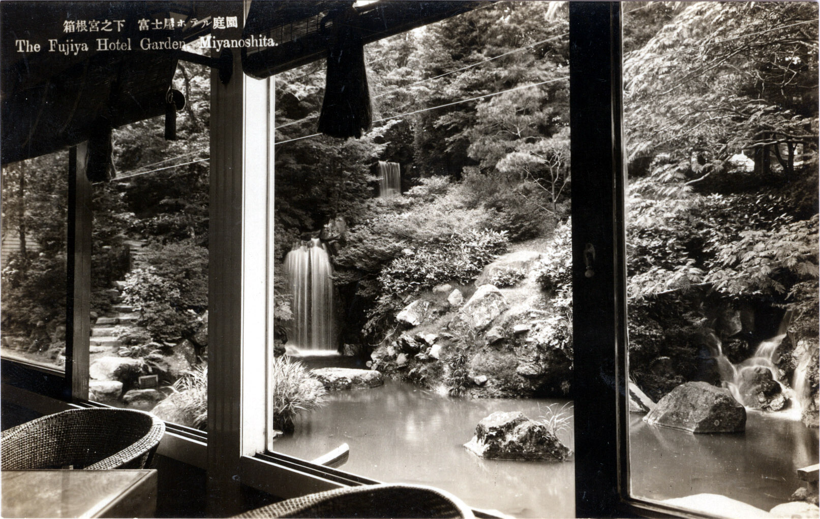 - Garden waterfall, Miyanoshita Fuijya Hotel, c. 1930.