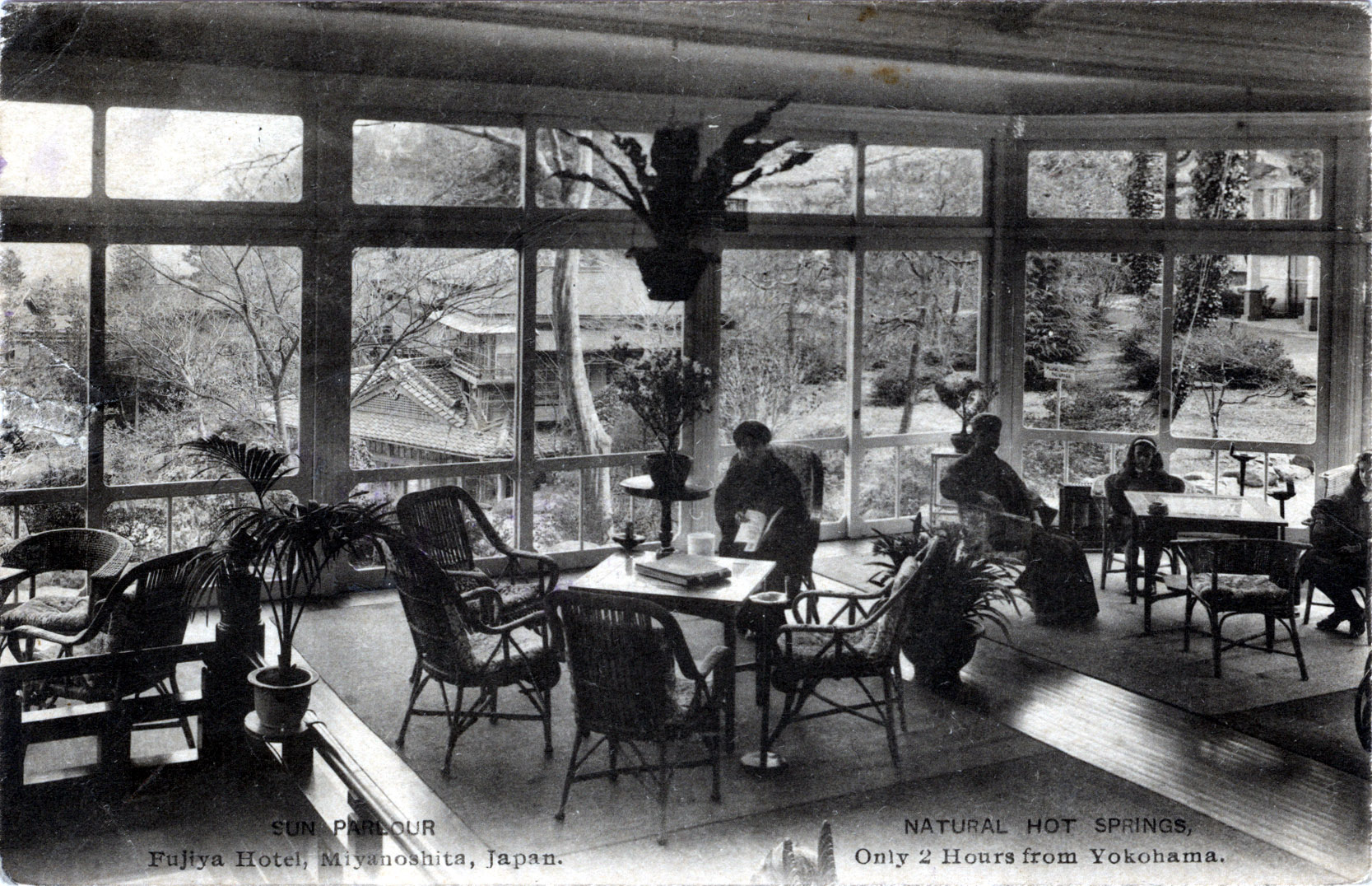 - Sun parlour, Fujiya Hotel, Miyanoshita, c. 1910.
