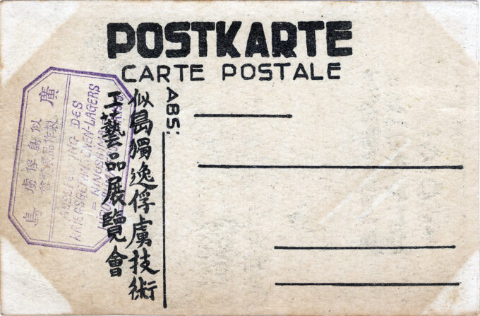 German POW art show advertising postcard, Ninoshima, 1919. More than 4,500 combatant German prisoners of war (POWs) were interned in temporary camps throughout Japan from 1914-1918, including Ninoshima near Hiroshima, and over a hundred former POWs chose to remain in Japan after the war ended in 1918. It was at this exhibition in 1919 where the German cake, Baumkuchen [“tree ring cake”] was first produced in Japan, and it quickly became the country’s most famous cake.