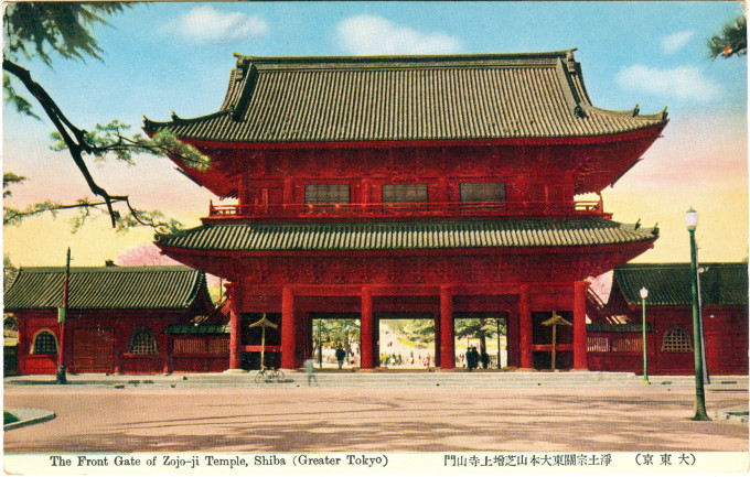 - The front gate of Zojo-ji Temple, Shiba, c. 1935.