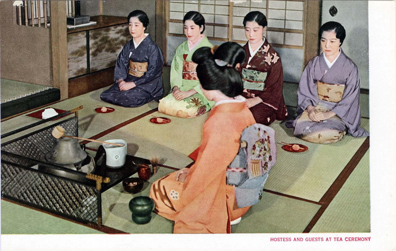 Japanese tea ceremony (chanoyu), c. 1960. Zen Buddhism was a primary influence in its development, but chanoyu would evolve into an elaborate and refined ceremony meant to demonstrate respect through grace and good etiquette.