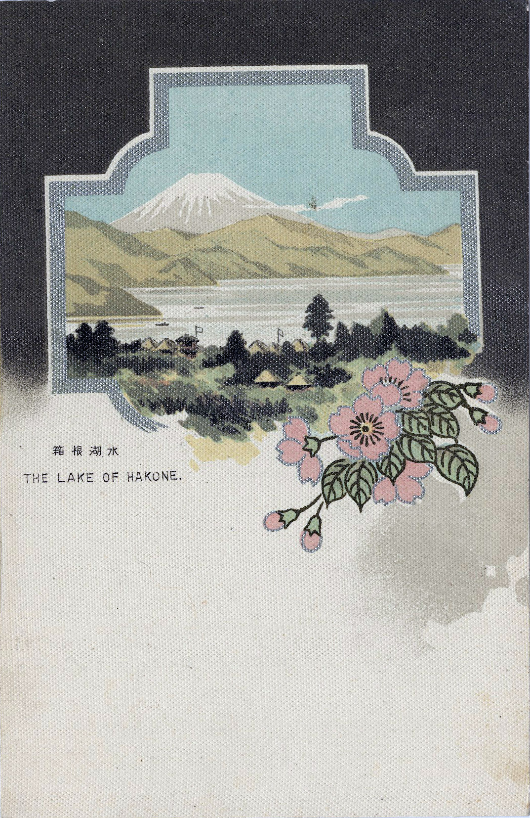 “The Lake of Hakone”, c. 1920. Ashinoko is known for its views of Mt. Fuji, its numerous hot springs, historical sites, and ryokan.
