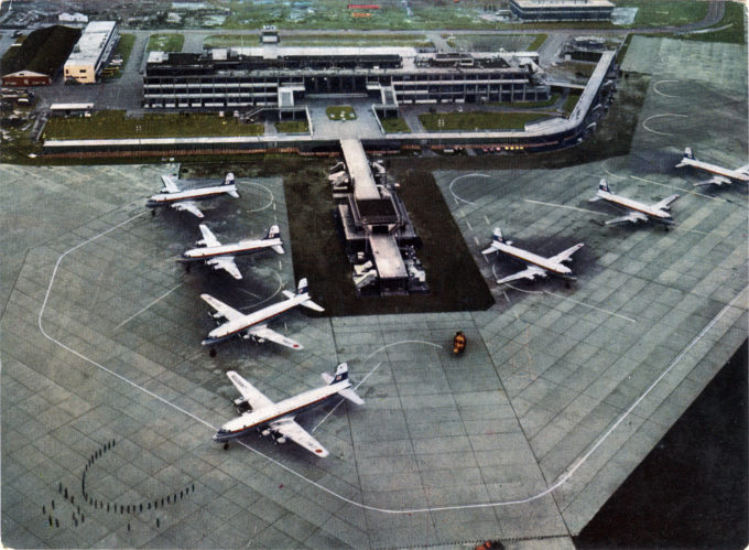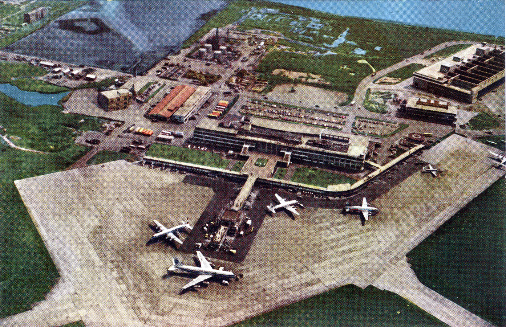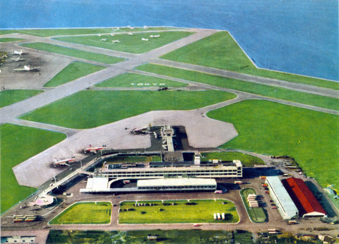 - Haneda Airport, c. 1960. An early Pan Am Boeing 707 “Clipper” is being serviced at center-bottom.