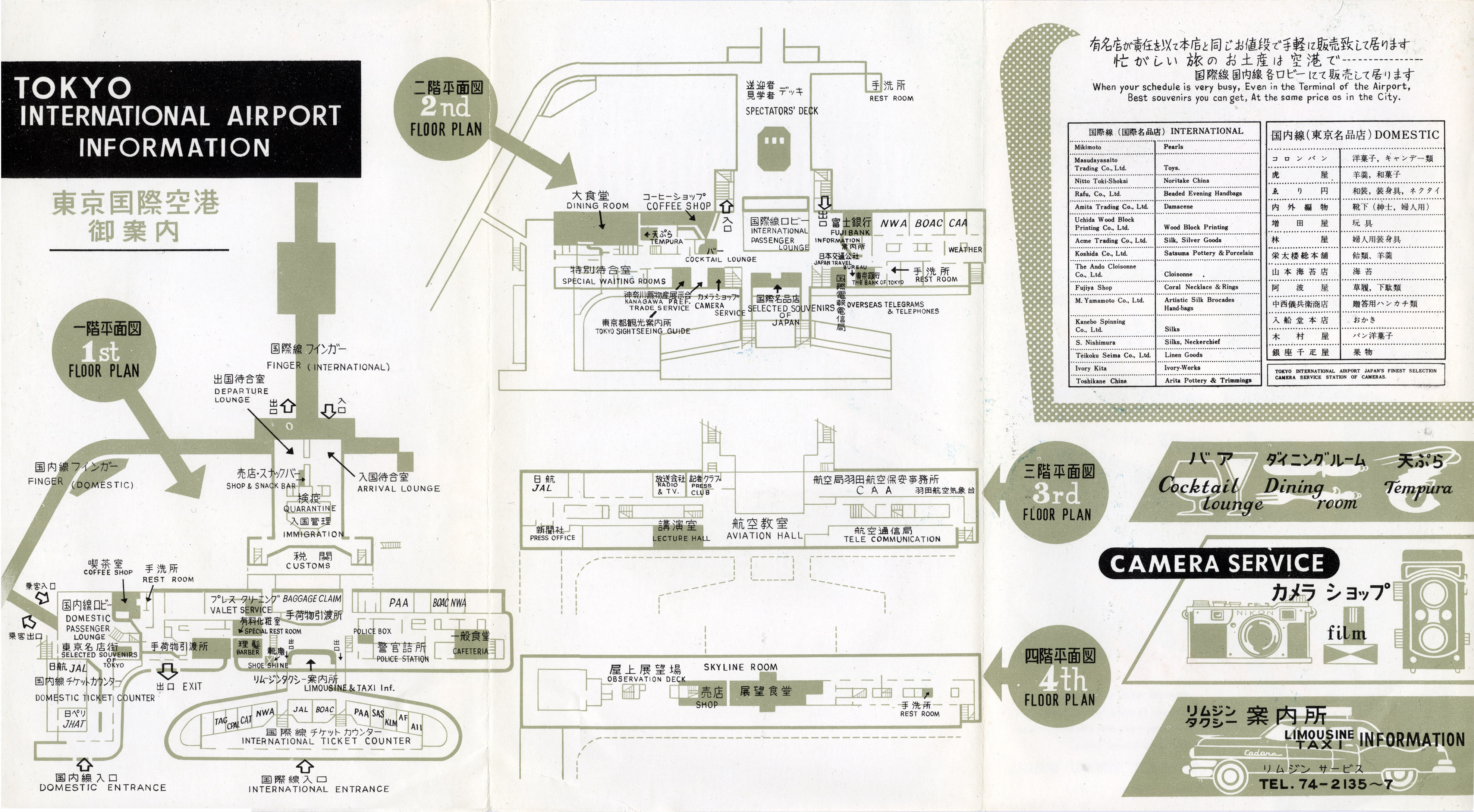 “A new passenger terminal was opened in 1955. A monorail connecting the airport to downtown Tokyo via Hamamatsucho (a 20-minute ride) was completed on the eve of the 1964 Tokyo Olympiad.