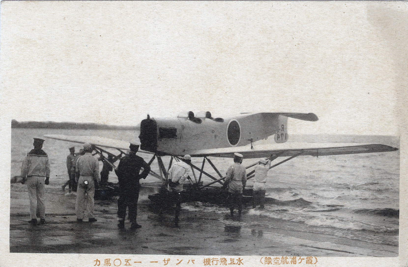 Nakajima E4N2 reconnaissance floatplane, military recruitment postcard, c. 1935.