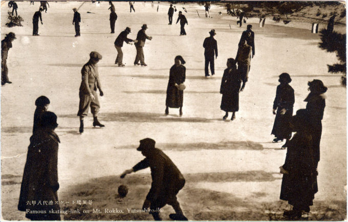 Ice skating at Lake Suwa, Nagano, c. 1930.