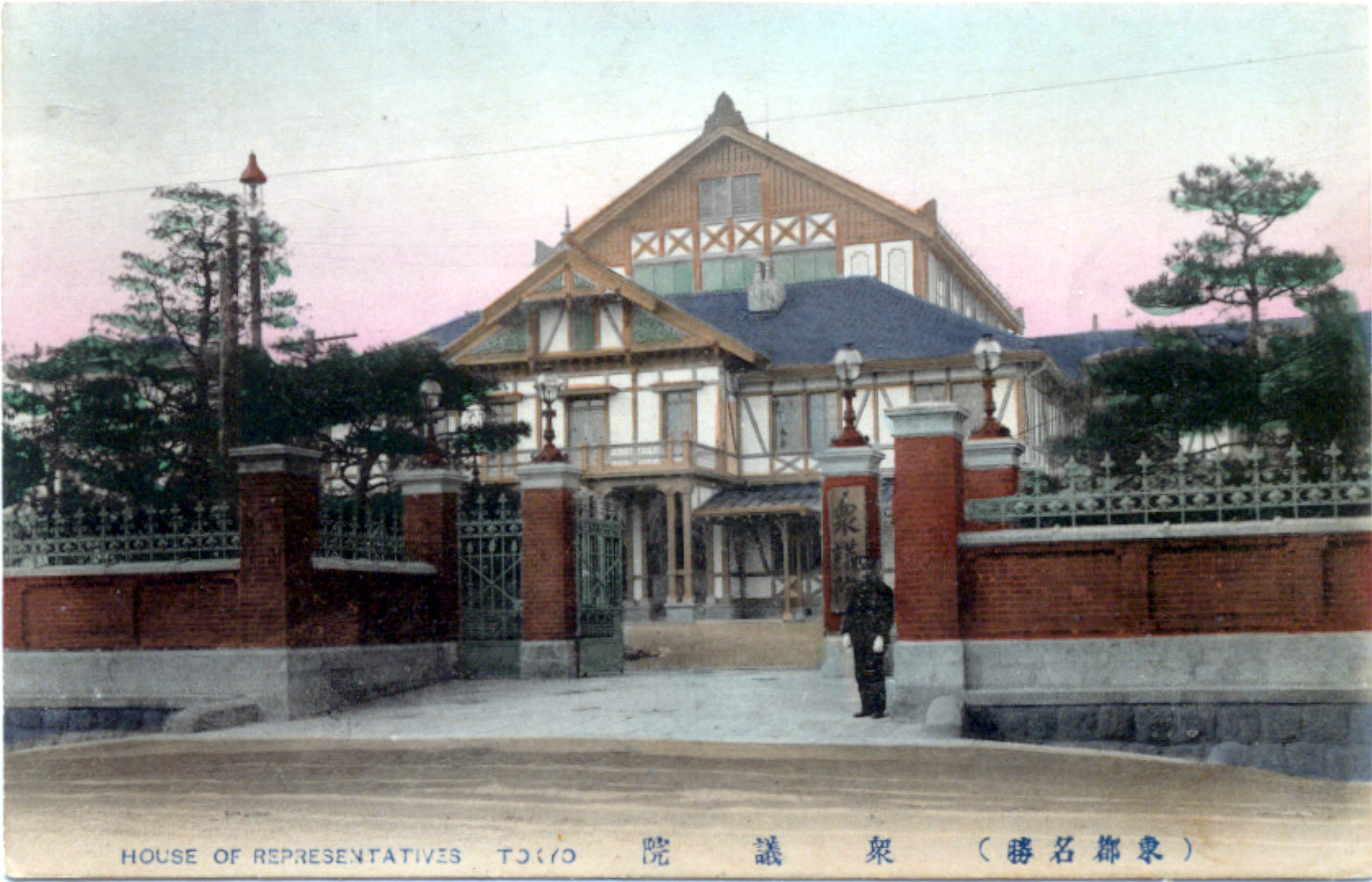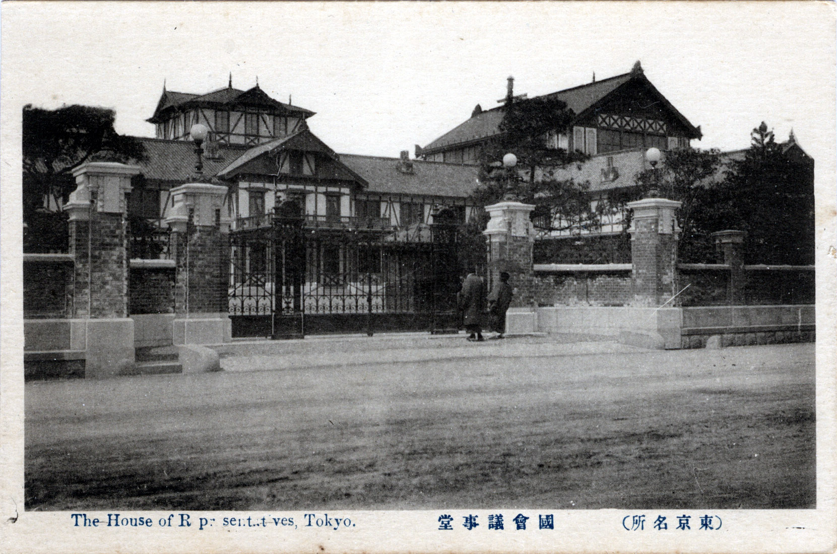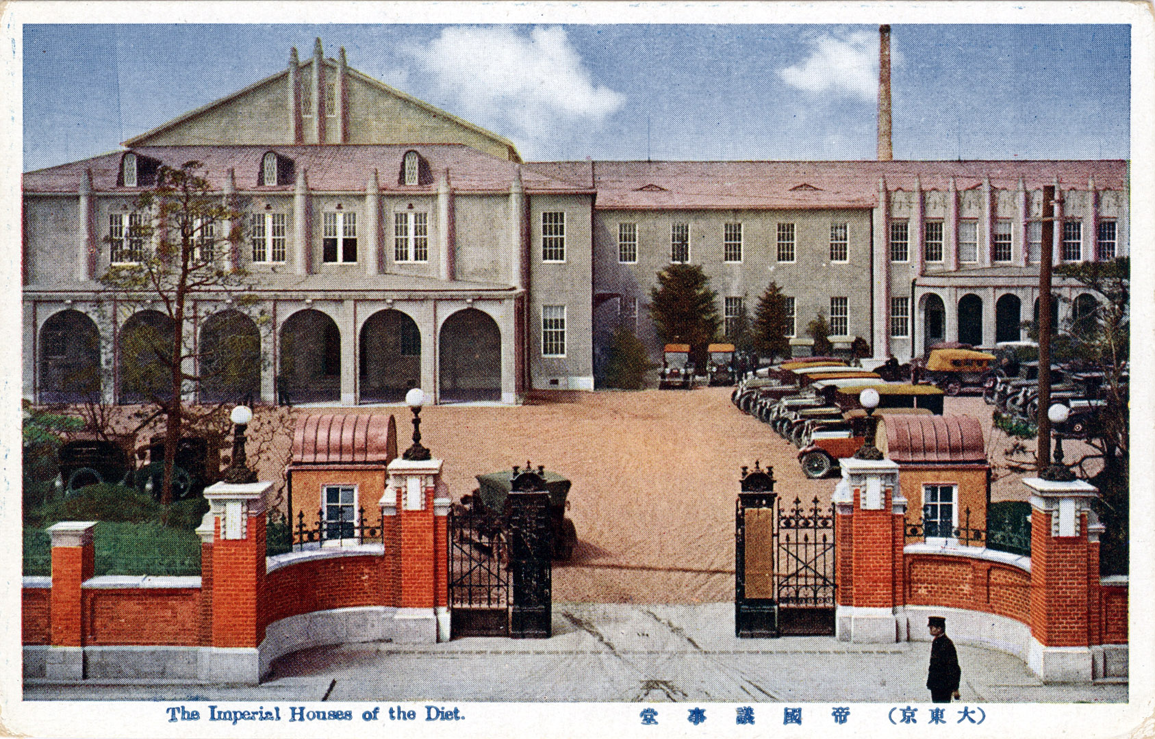 House of Representatives (Diet), Tokyo, c. 1920. Imperial Diet sessions were held in this building (the second Diet) 48 times before it burned down in 1925. A third Diet was rushed to completion in only 80 days, and served as a temporary site until 1936 when the long-planned present-day structure, the fourth Diet, was completed.