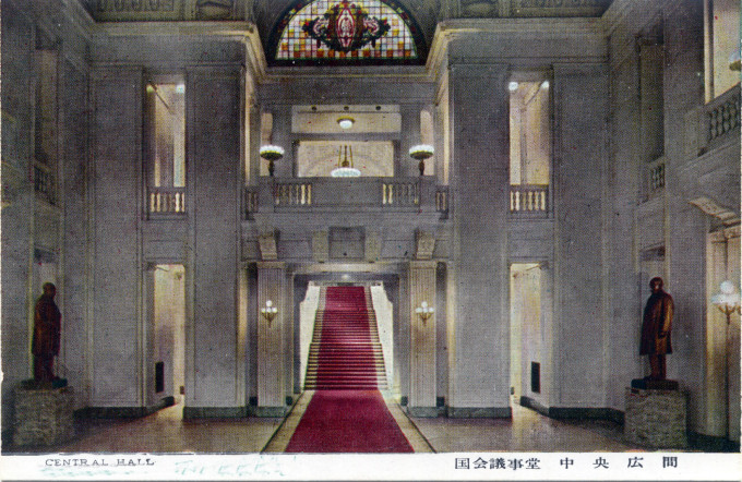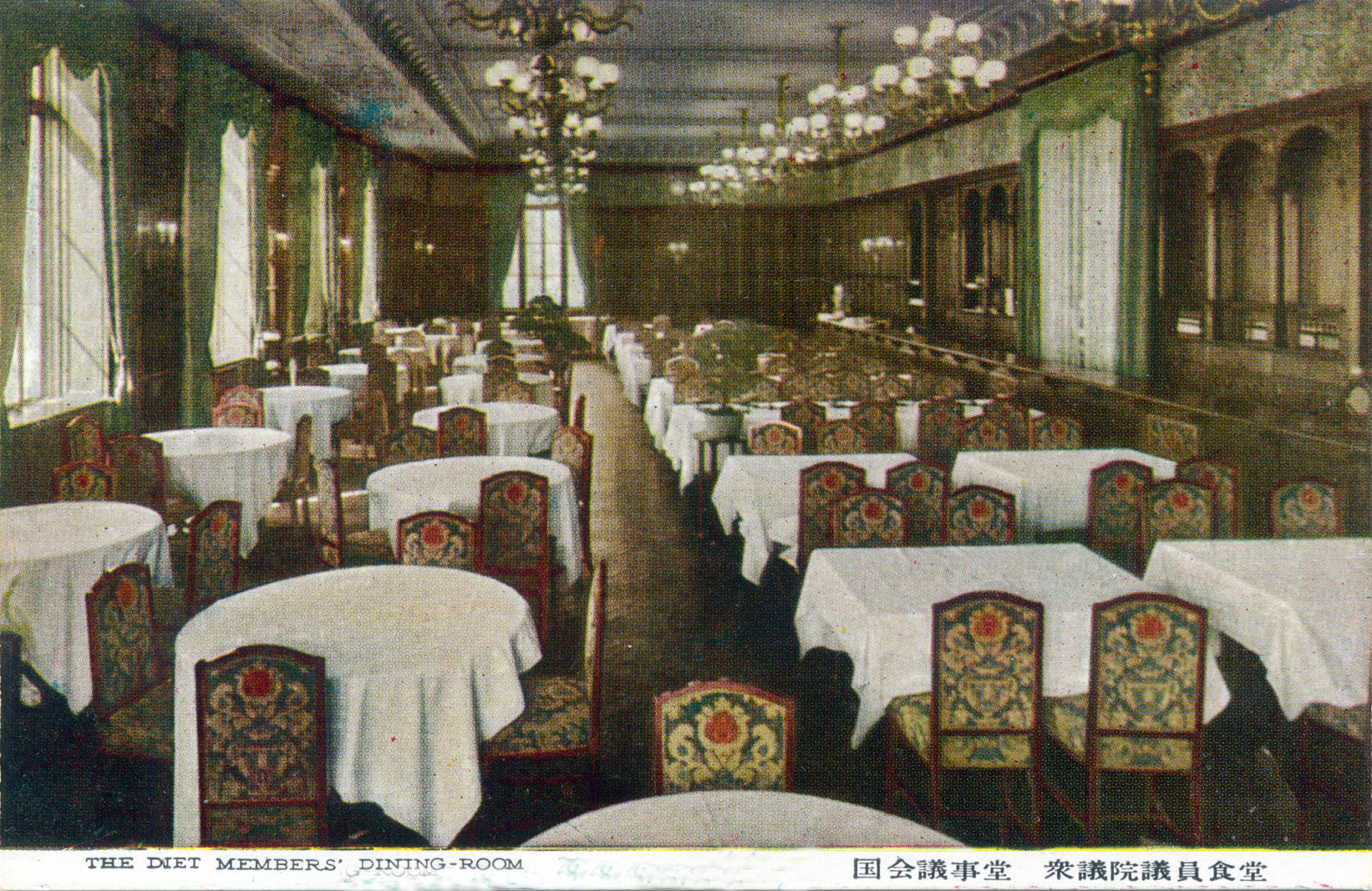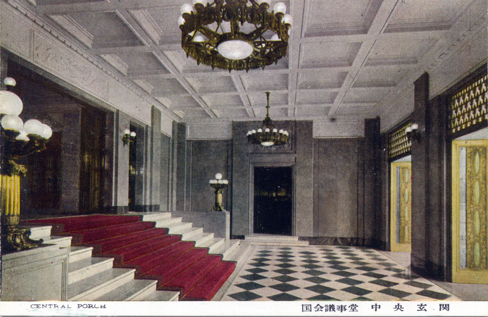 “The second Diet (above) was larger than the first, but followed a similar design. Imperial Diet sessions were held in this building 48 times before it, too, burned down, in 1925. A third Diet was rushed to completion in only 80 days, and served as a temporary site until 1936 when the long-planned present-day structure, the fourth Diet, was completed.