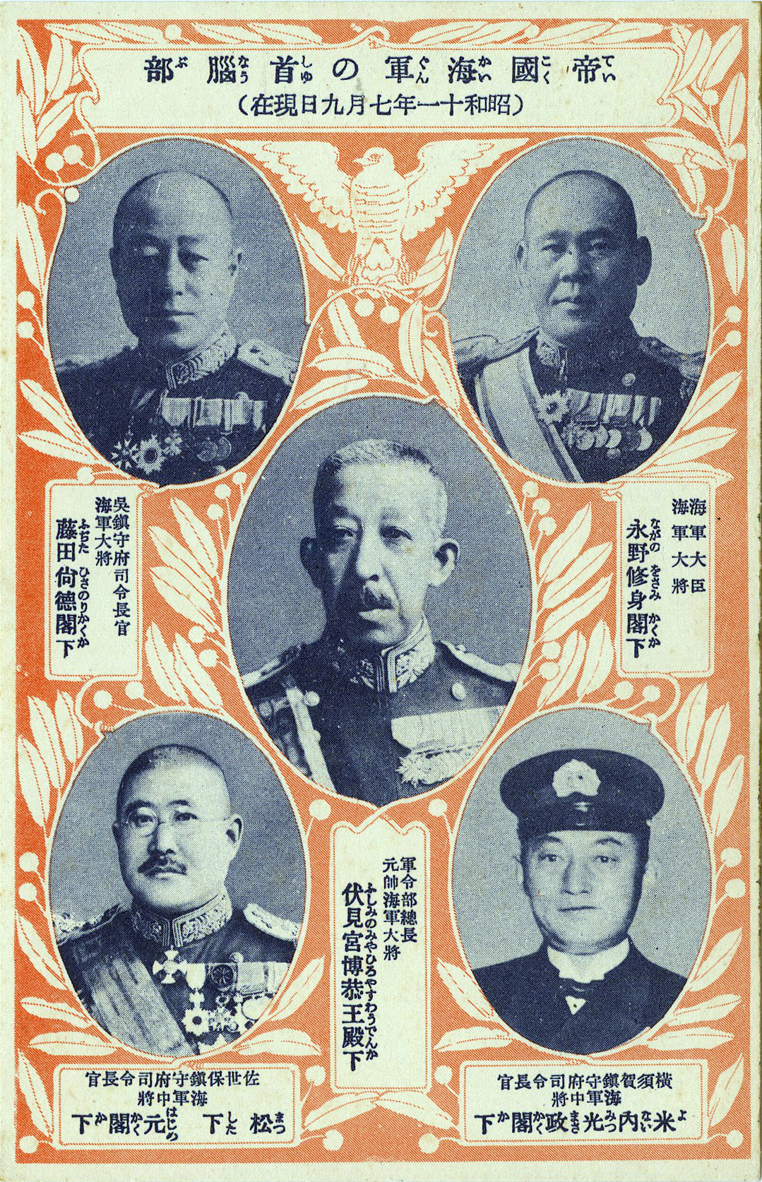 Center: Marshal Admiral Prince Fushimi Nomiya Hiroyasu, Chief of Staff (1932-1941).