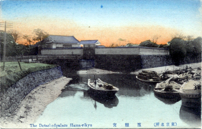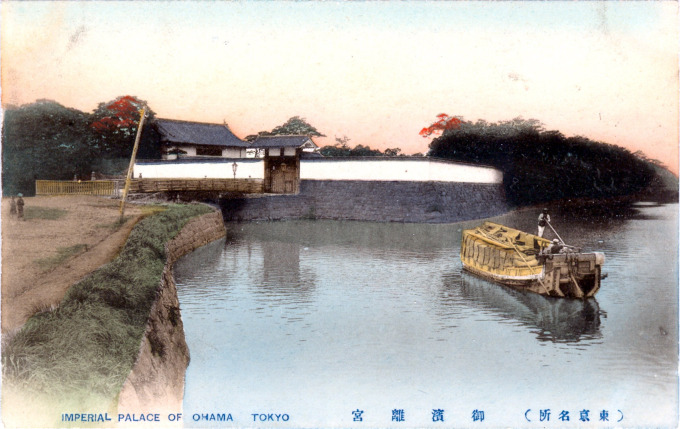 “The name of the residence and grounds was changed to Hama Goden [Beach Palace]. From that time, Shoguns made various changes to the garden. The garden was finally finished at the time of the 11th shogun, Ienari, and has remained basically the same to modern times. After the Meiji Restoration, the garden was a Detached Palace for the Imperial family and the name was changed to Hama Detached Palace.