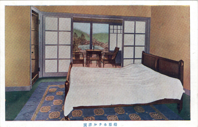 - Western-style room, Izu Funabara Onsen, c. 1930. With private outdoor onsen.