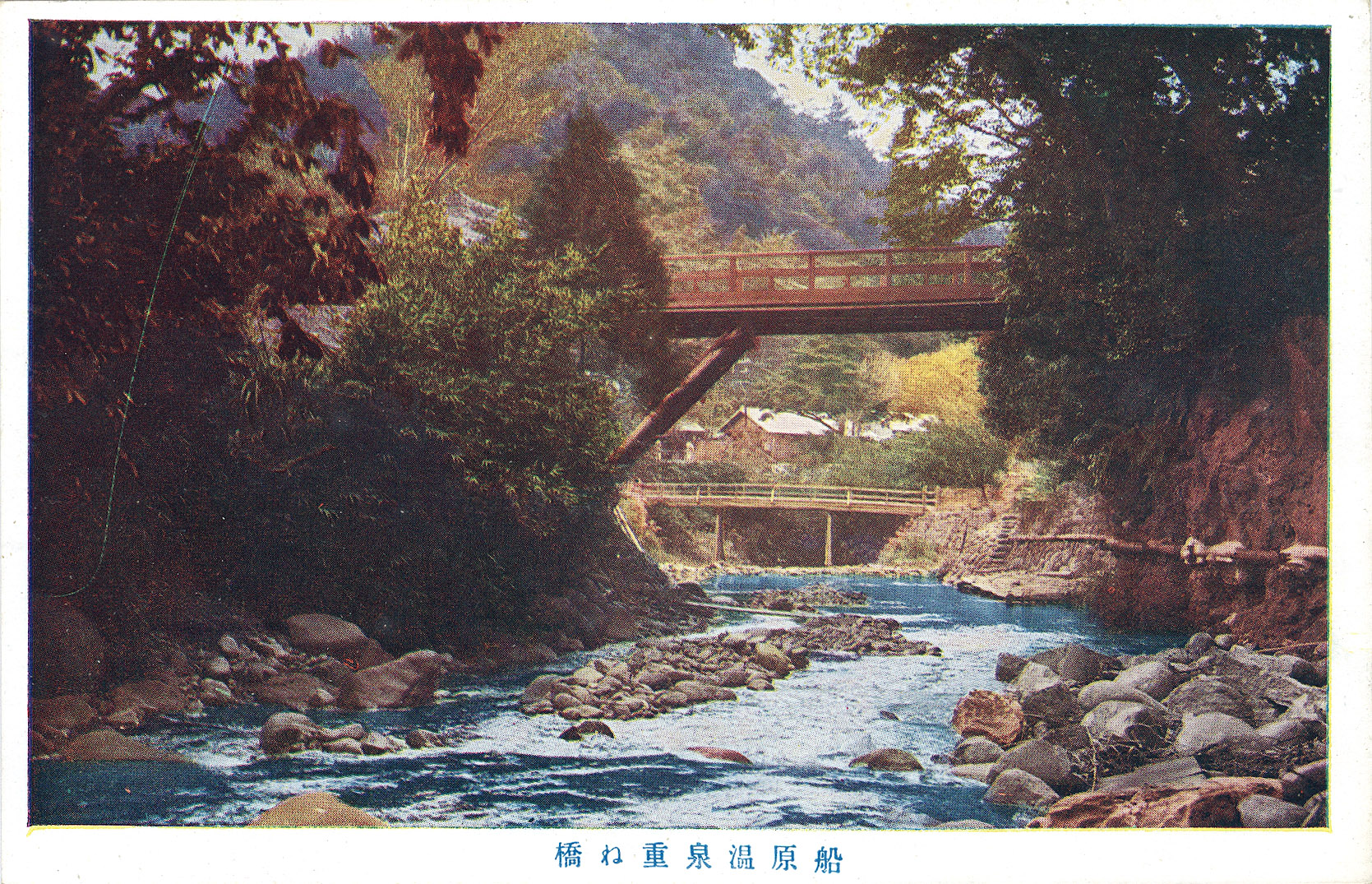 - “Bridge spanning the Funabara-gawa”, Izu Funabara Onsen, c. 1930.
