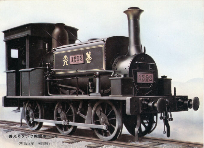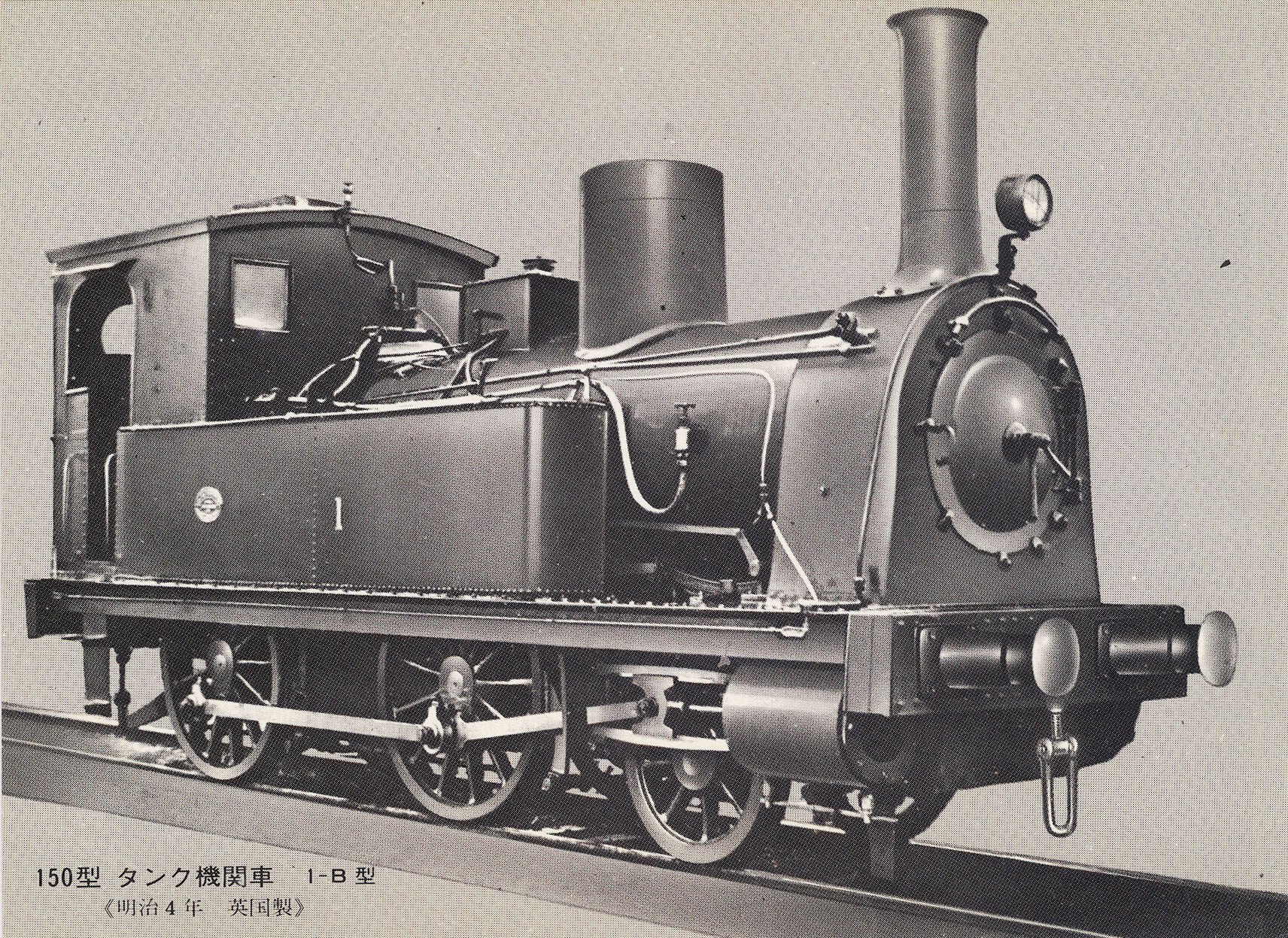 The Class 150 was the first steam locomotive class to operate in Japan. Only one was imported by the Japanese government before the opening of Japan’s first railroad. Locomotive No. 1, manufactured by Vulcan Foundry, Lancashire, UK, began running on 14 October 1872 between Sakuragicho (Yokohama) and Shimbashi (Tokyo). After being used for about eight years, in November 1880 the locomotive was transferred to the Kobe area of what would later become the Tōkaidō Main Line. From 1885, Locomotive No. 1’s duties were reduced to railyard shunting service. The JGR continued to operate it until 1911 when it was sold to and operated by Shimabara Railway. In 1930, Locomotive No. 1 was then sold back to the JGR for use as a museum piece and put on display at the original Transportation Museum at Manseibashi, Tokyo. It remains today on display at the Railway Museum in Saitama Prefecture. In 1997, Locomotive No. 1 became Japan’s first railway vehicle to be designated as a national Important Cultural Property.