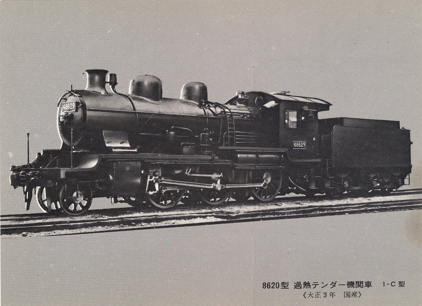The Class 8620 was a 2-6-0 steam locomotive built from 1914 to 1929. It was Japan’s first mass-produced passenger locomotive. A total of 672 Class 8620 locomotives were built. As of 2014, twenty Class 8620 locomotives have been preserved in Japan, including one preserved in working order at the Kyoto Railway Museum, Kyoto.