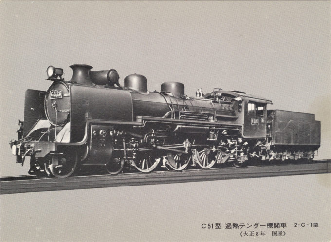 The Class C51 was a type of 4-6-2 steam locomotive (The C classification indicates three sets of driving wheels) operated by Japan Government Railways beginning in 1919. A total of 289 were manufactured between 1919-1928, and the locomotives remained in operation until 1976. The C51s raised the average speed on the Tōkaidō Main Line from 47.3 km/h (29.4 mph) to 55.3 km/h (34.4 mph). In 1930, a C51 hauled the first Tsubame (Swallow) express, reducing travel time between Tokyo and Kōbe to 9 hours.