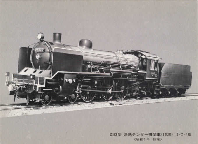 The Class C53 was a three-cylinder 4-6-2 Pacific-type steam locomotive operated by the Japanese Government Railways and Japanese National Railways between 1928 to 1950. The ninety-seven C53s manufactured were used mainly as passenger locomotives, pulling limited express and express trains on the Tokaido Main Line and Sanyo Main Line. One C53, number C53 45, is on static display in the roundhouse of the Kyoto Railway Museum, the only preserved three-cylinder locomotive in Japan. Another member of the class, C53 43, was streamlined in 1937.