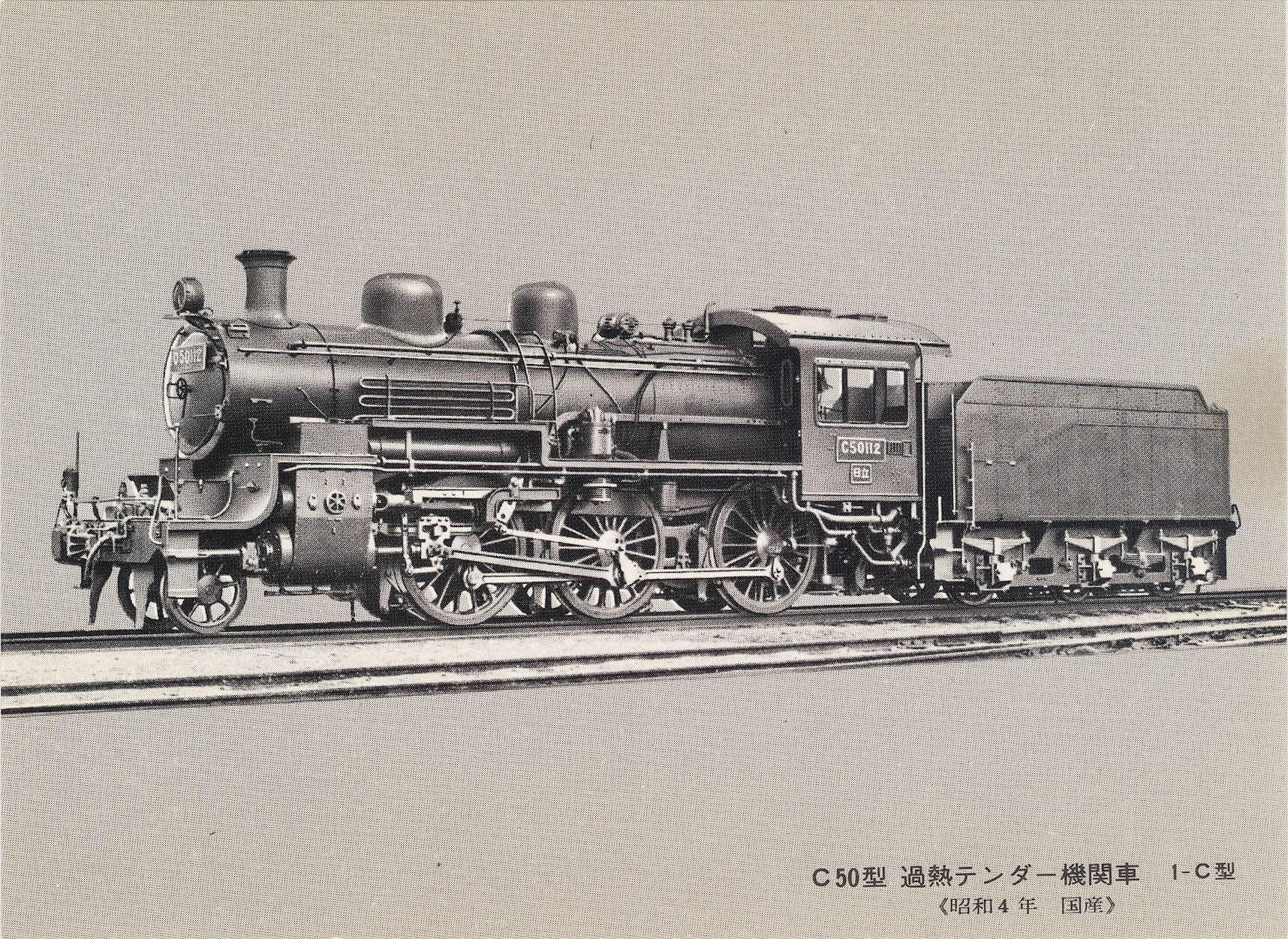 The Class C50 was a 2-6-0 Mogul-type steam locomotive built for the JGR from 1929 to 1933. During that time, a total of 154 locomotives were manufactured in two batches. These were operated by the JGR and, postwar, by the JNR with the last C50 being retired in 1974. Five C50s were transferred prewar to Formosa (Taiwan) where they operated as the CT230 Class.