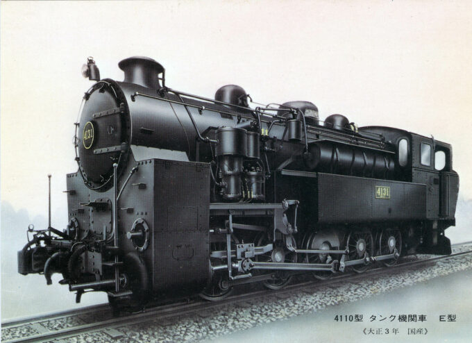 The Class 4110 were used mainly as freight locomotives and was able to cope with very steep gradients coupled with practically unheard of strength with regards to pulling power. The 4110s were essentially domestically manufactured copies of the Class 4100 locomotives made by Maffei in Germany, with thirty-nine built by the Kawasaki Shipyards. The locomotives were retired in 1950 after being replaced by the Class E10s in their duties.
