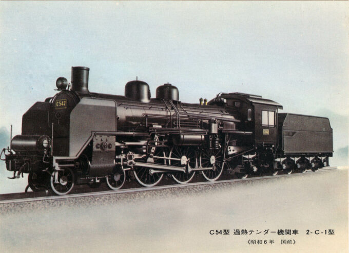 The Class C54 was a 4-6-2 Pacific-type steam locomotive operated from 1931 to 1963 by both JGR and JNR. The locomotives were only produced for one year, 1931, with just seventeen locomotives produced over the year. the Class C55 locomotives would be designed shortly after using lessons learned from the design of the C54. By the 1950s, nine of the locomotives had already been withdrawn and scrapped. All locomotives were withdrawn from government rail service by 1963; none were sold to private railroads.