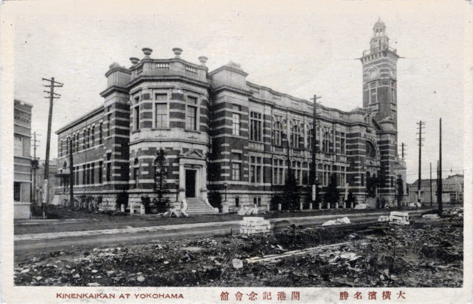 “Construction of the Yokohama Port Opening Memorial Hall (in Japanaese Kenenkaikan) was finished in 1917, paid for by donations from citizens. It commemorated the 50th anniversary of opening Yokohama Port in 1867. Since then, it has become one of Yokohama’s popular symbolic buildings. It has kept its shape since it was founded, and is the only building used as the current public meeting hall. The building’s interior burned in the 1923 Great Kanto earthquake, but it was restored in 1927.