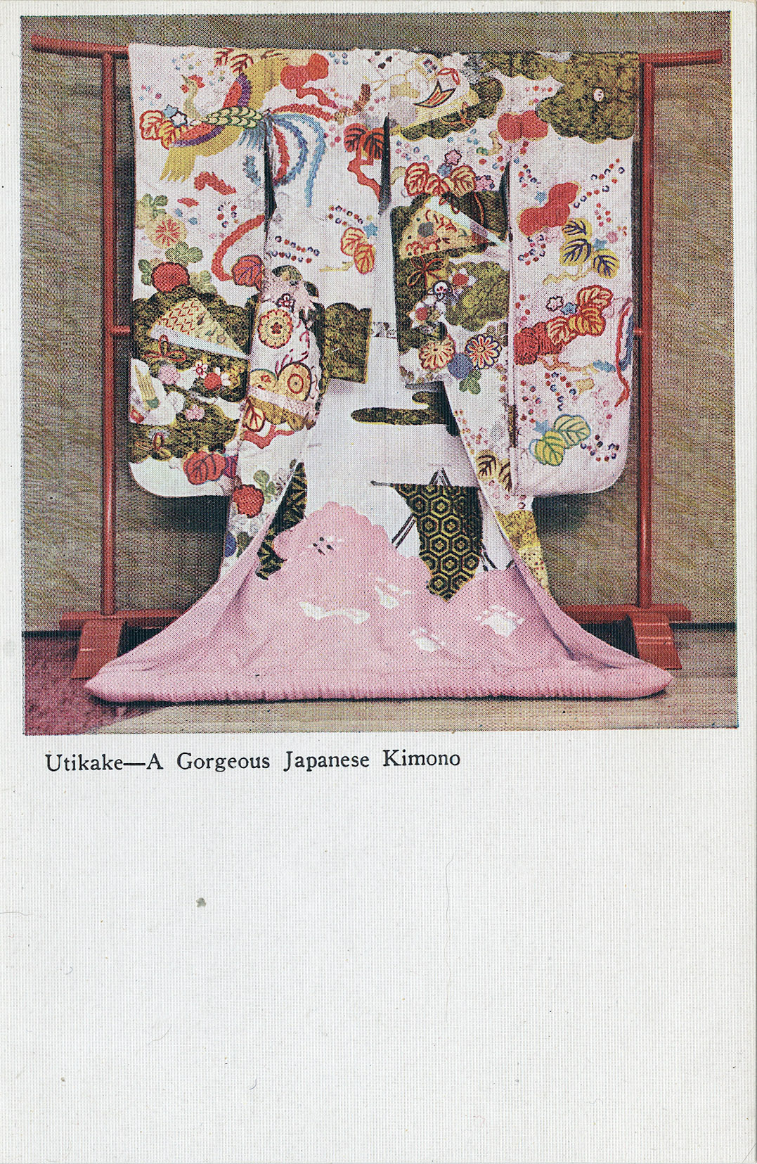 - “Utikake – a gorgeous Japanese kimono”.Japan Pavilion, Golden Gate International Exposition, San Francisco, CA, 1939.
