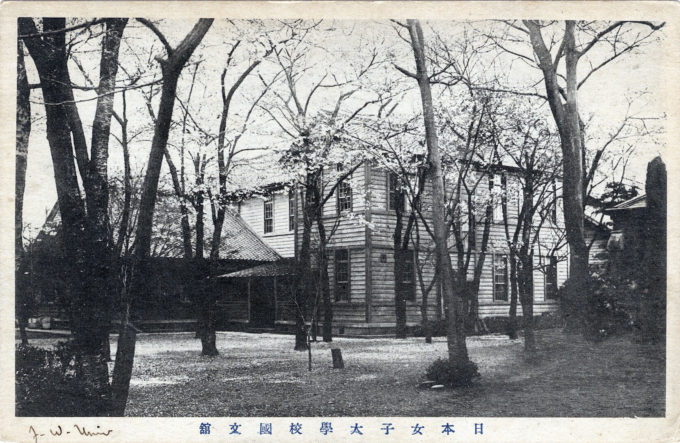 “… The dormitories, which are built on the opposite side of the gardens, are in pure Japanese style and accommodate altogether some three hundred boarders, each house of thirty students being under the care of a house matron, who is generally either a teacher or one of the older students. … She is responsible for those under her charge as to letter-writing, walks, visiting, and food. Rules are strict, no one being allowed out, except on Thursday and Sunday, on both of which days they must be back b 5 p.m.”