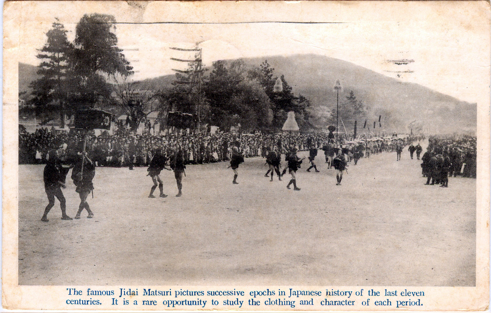 “The famous Jidai Matsuri pictures successive epochs in Japanese history of the last eleven centuries. It is a rate opportunity to study the clothing and character of each period.” Kyoto, 1914. The festival reenacts the procession and relocation of the Emperor of Japan (Meiji) and his imperial family, the Imperial Palace Household, and thousands of government officials and subjects from Kyoto to the new capital city established at Tokyo (née Edo) in 1868.