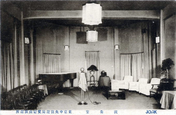 “Tokyo Broadcasting Station at the time was housed in a building in central Tokyo, atop a twenty-six-meter-high hill called Atagoyama with an impressive view of the surrounding streets and buildings. Producer Kobayashi Tokujiro later recalled that after the announcer had finished his introduction, ‘if you looked outside the window, you could see the lights in the houses down below going off one by one.’ A magazine reporter present during the broadcast wrote that there was ‘an unusual tension in the air, like Paris bracing itself for a night attack from a German Zeppelin. All the homes listening to the radio were shrouded in darkness.'”
