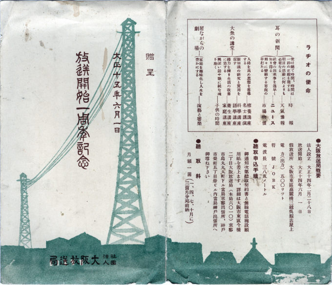 JOBK Radio, Osaka, commemorating the one-year anniversary in 1926 of the station’s first broadcast on June 1, 1925.