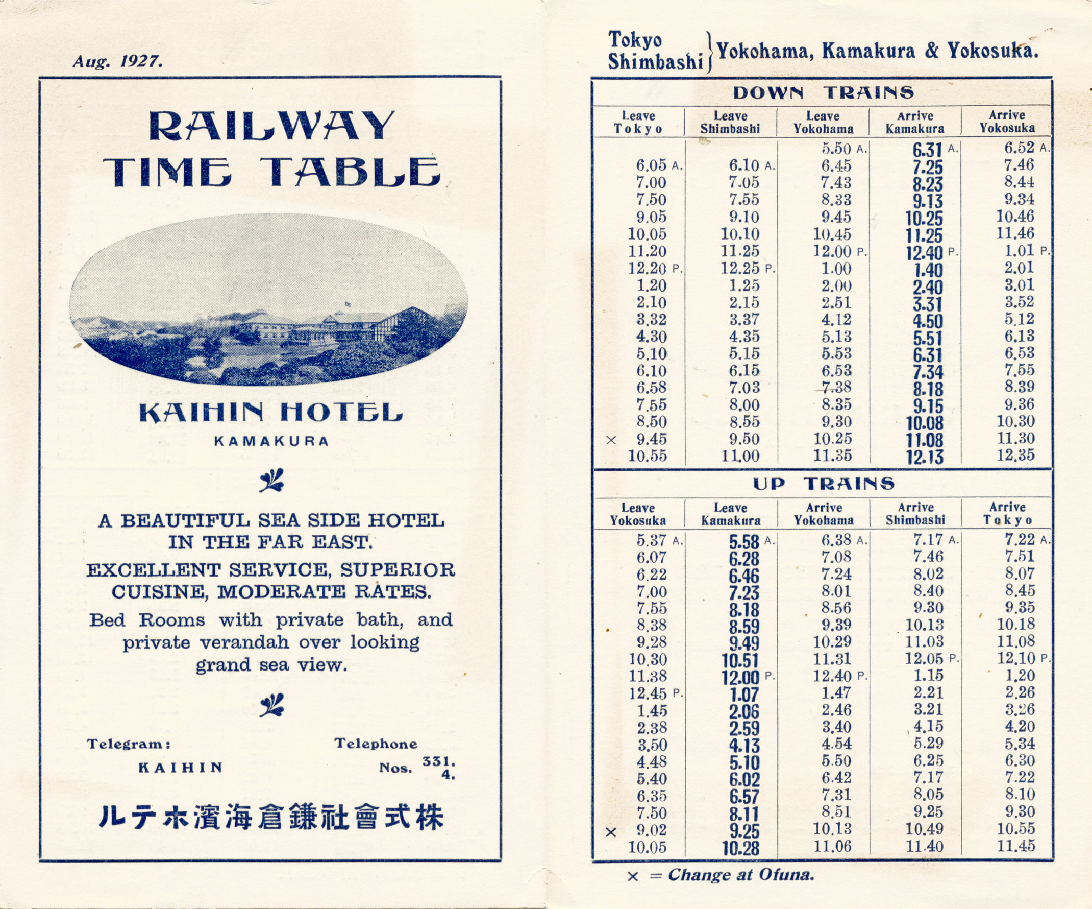 “In 1890 the railroad, which before then had not come nearer than Ofuna – the junction upon the main line four miles distant – directly linked Kamakura with the capital, this fact being naturally conducive to a new era of prosperity.