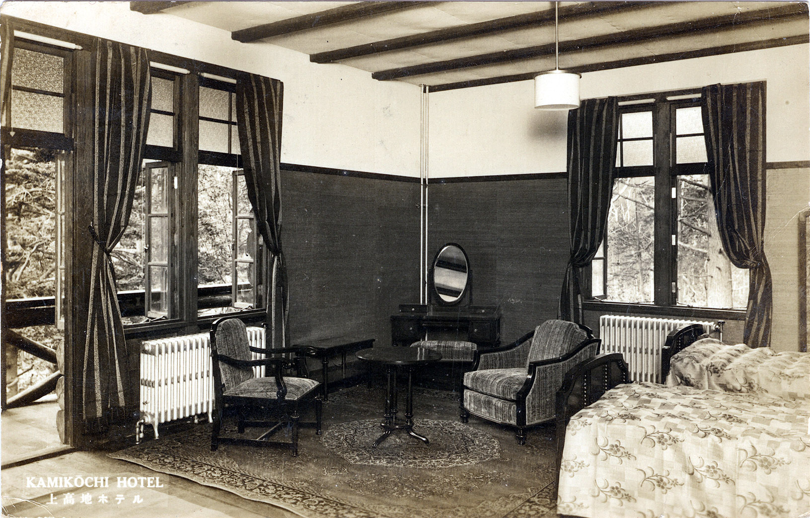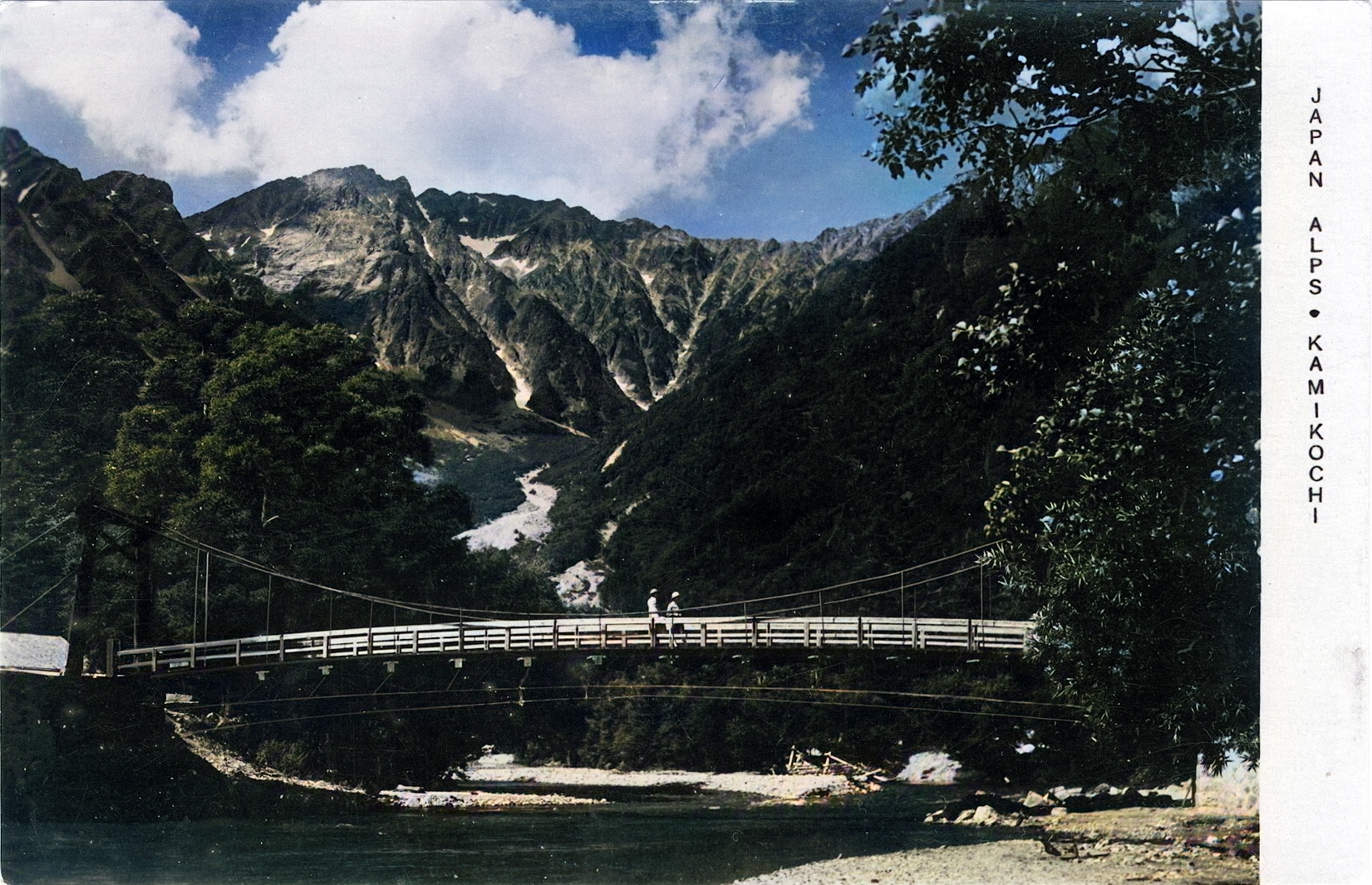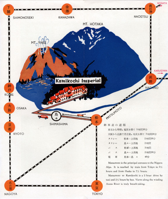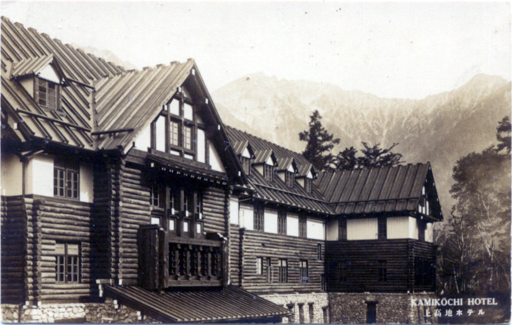 “[In 1953] For the first three days, we stayed at Matsumoto in the famous Kamikochi Hotel. Built in the early 1930s in the style of a Swiss mountain hotel, it sat in the shadow of Japan’s highest peak, Yaregatake. The food was excellent French cuisine served in a formal Continental style, the menus in French and Japanese – no English.