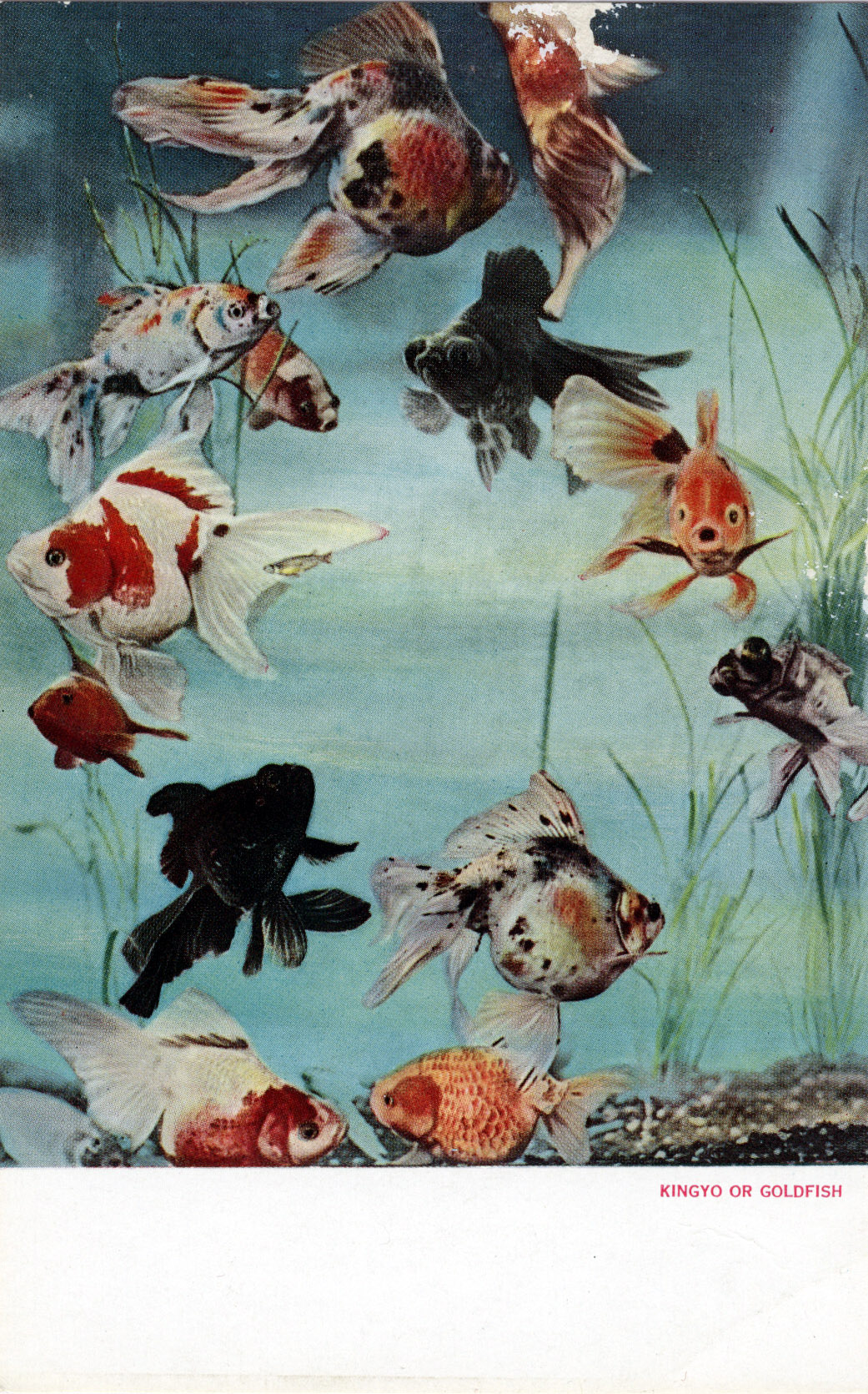 “Japan, where the culture of goldfish has been highly developed, is regarded as the home of goldfish. Because of their beauty of shape and color goldfish are bred by goldfish fanciers and commercial breeders, and are especially prized for their graceful appearance and for their brilliant coloring. While there are many varieties of this fish the most popular are: