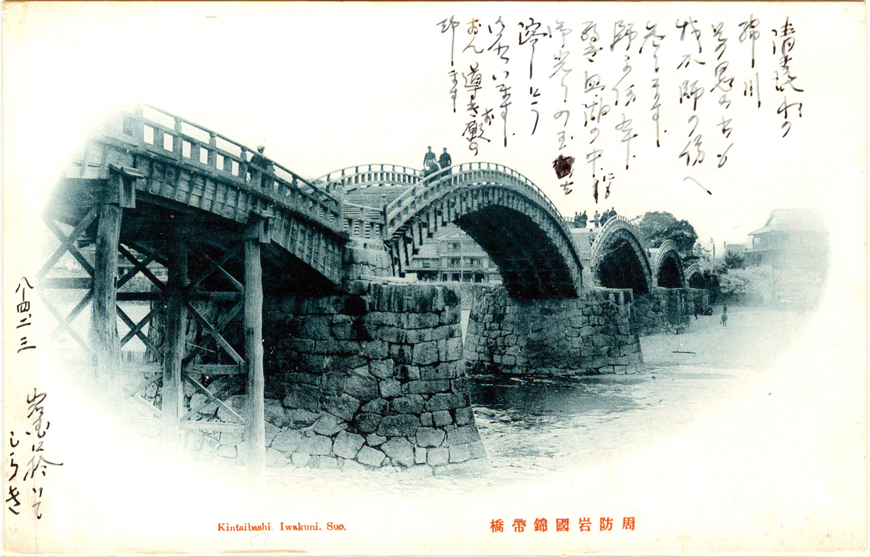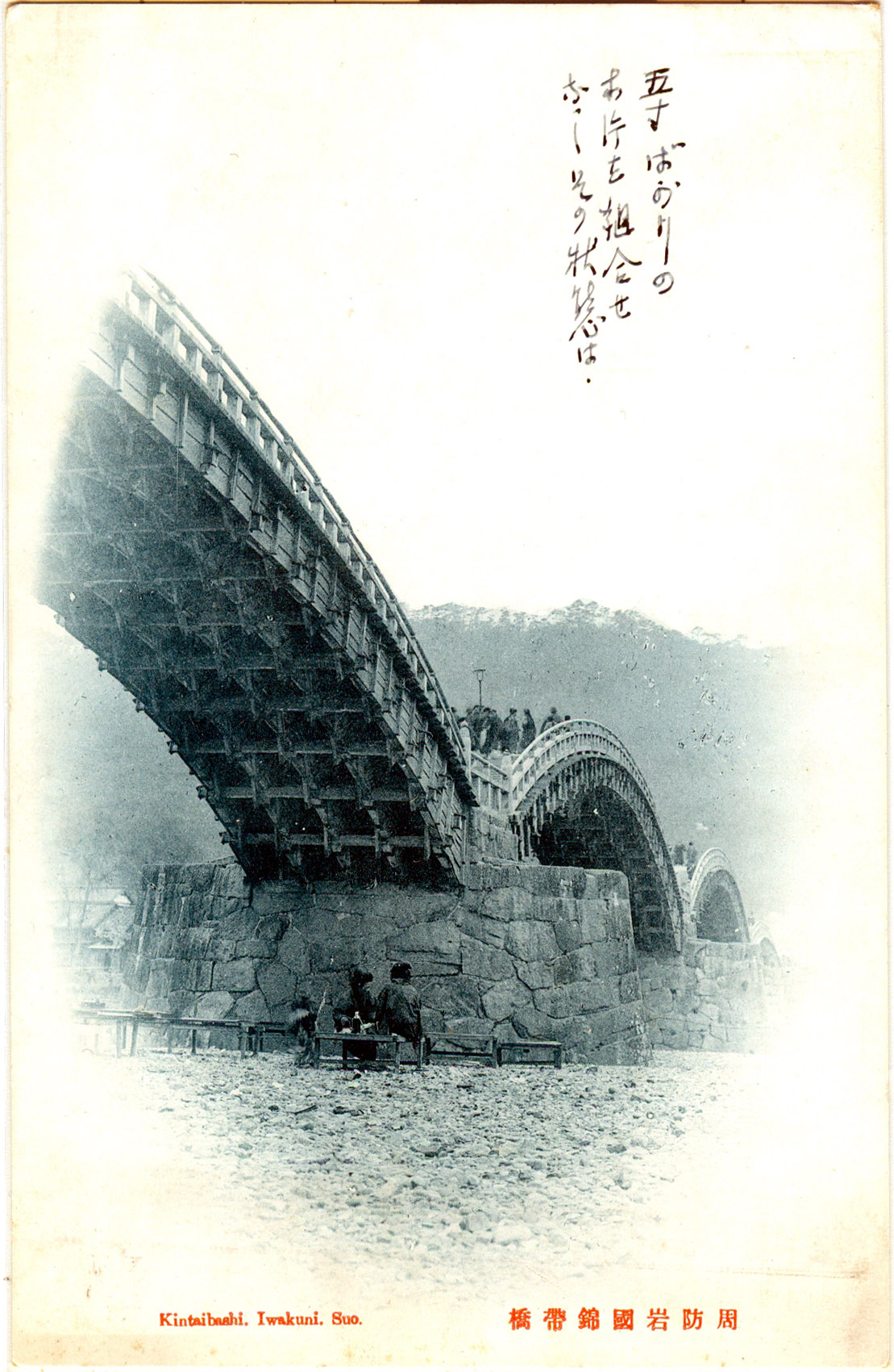 “Consequently, the bridge remained undestroyed for 276 years, until washed away again by flooding from typhoon ‘Kijia’ in 1950. It had been in a weakened state at the time, due to the fact that the Japanese had stopped maintaining the bridge during World War II, and that the year before the typhoon, a large amount of gravel was taken by the US military forces from the river around the bridge to expand the US Marine Corps Air Station in Iwakuni, strengthening the flow of the river.