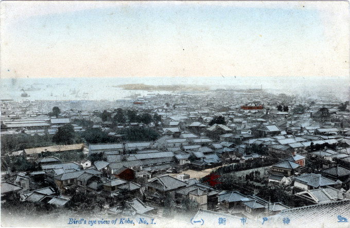 “Previous to that time, the native trade had been carried on at the neighboring port of Hyogo. Owing to the increase in population and prosperity of the port, Kobe is rapidly extending up the hill at the back.”