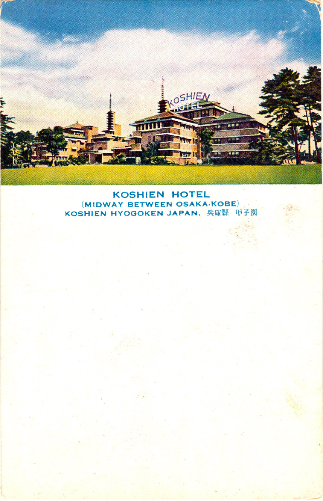 Koshien Hotel, “midway between Osaka-Kobe”, c. 1930, designed by Frank Lloyd Wright disciple Arata Endo.