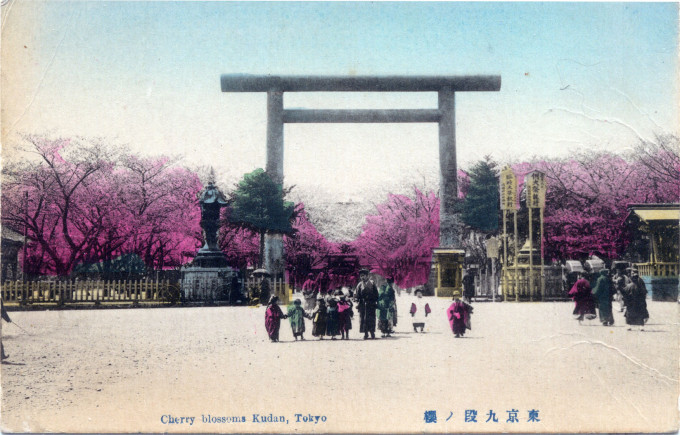 - The torii entrance to Yasukuni Shrine at Kudanzaka, c. 1910.