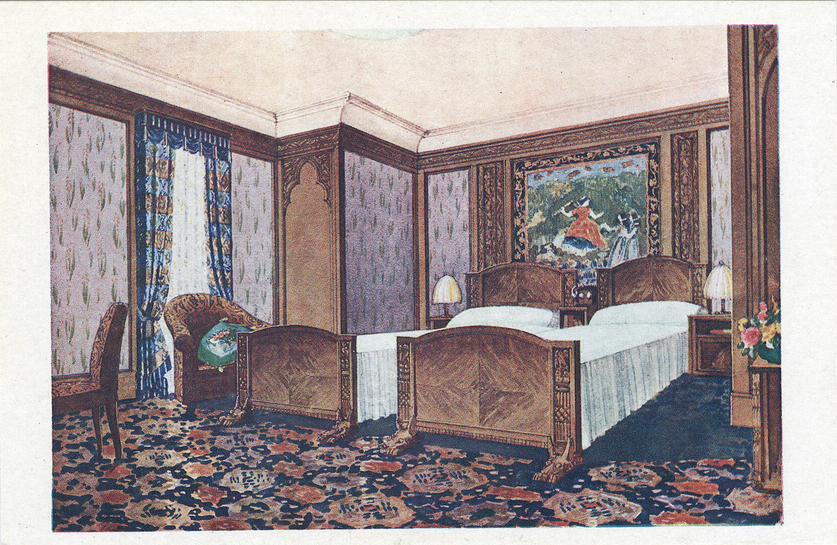 - M.S. Asama Maru, bedroom of the ‘suite de luxe , c. 1930.