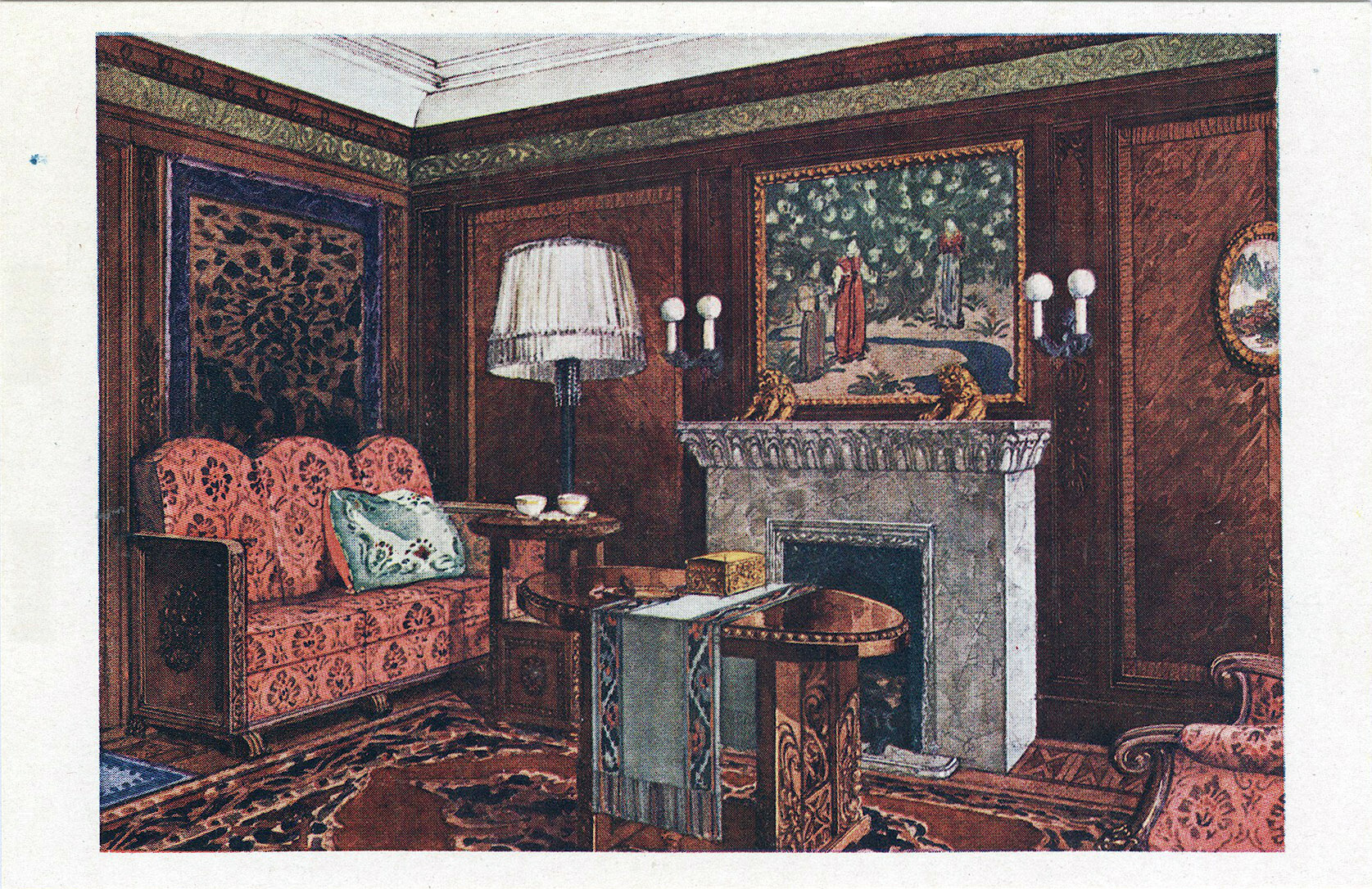 - M.S. Asama Maru, sitting room of the ‘suite de luxe’, c. 1930.