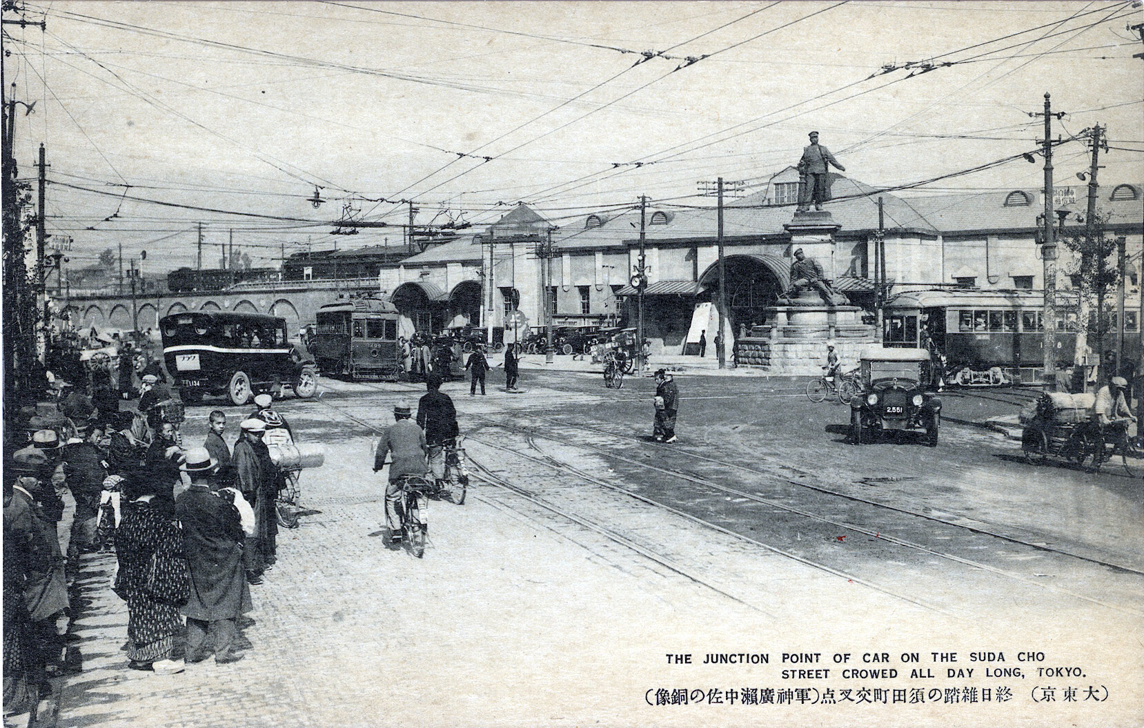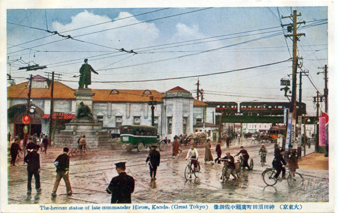 On the station plaza, fronting the Kanda Sudacho district, was a statue of Russo-Japanese War naval hero Commander Hirose Takeo. The statue remembers his sacrifice during the Battle of Port Lushun in 1905 when Hirose’s warrant officer was setting charges scuttling a ship to seal off the harbor to entrap Imperial Russian navy. A Russian torpedo struck the ship.