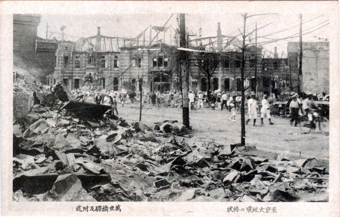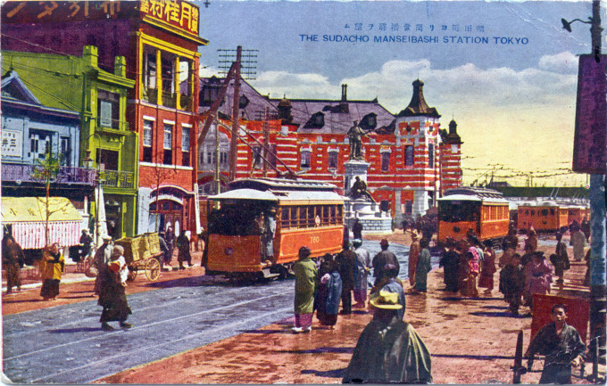 - Streetcar crossing the Manseibashi Bridge in front of the terminal, c. 1920.