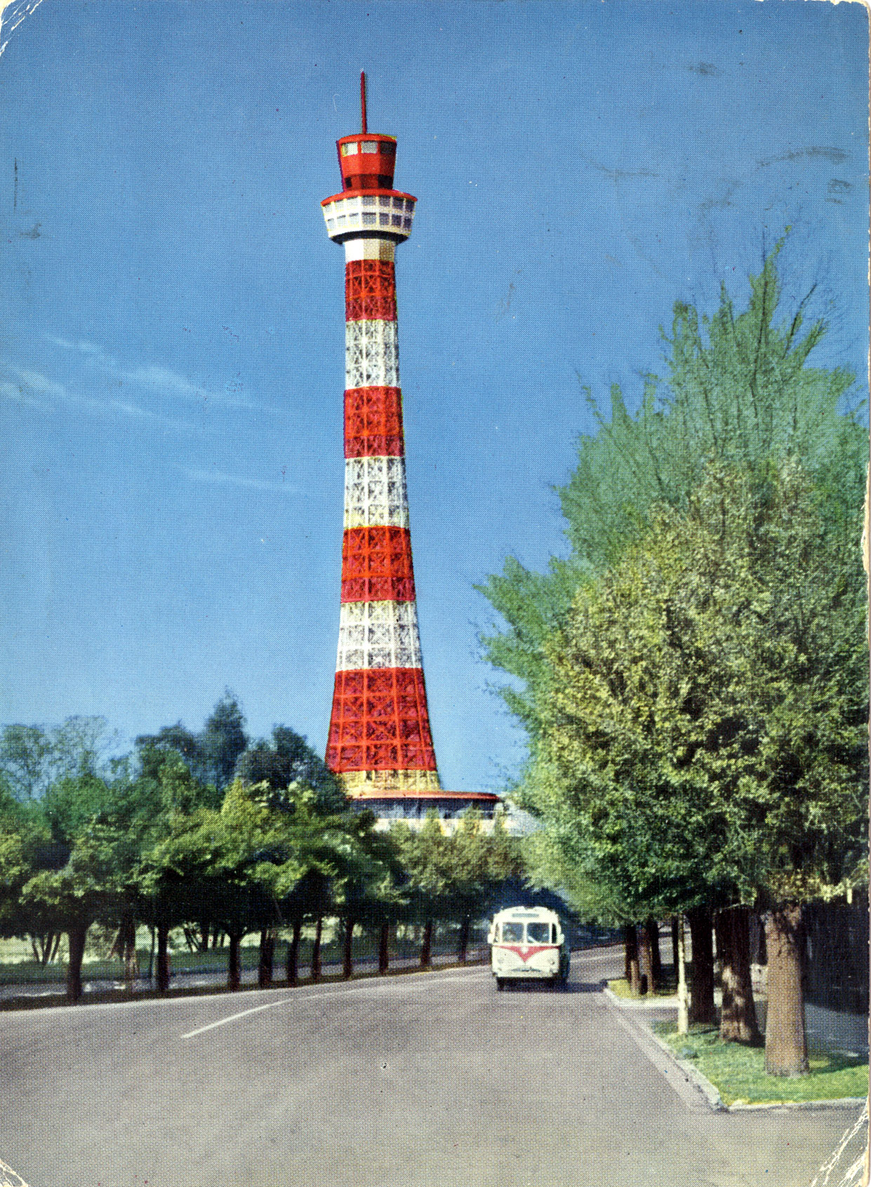 From the wiki: “Yokohama Marine Tower was inaugurated in 1961 as one of the events celebrating the 100th anniversary of the opening of the Port of Yokohama to foreign trade. The latticed, skeletal tower was billed as ‘the tallest lighthouse in the world’ (although this depends on how one defines ‘lighthouse’) and, in clear conditions, visitors can see Mount Fuji from its 100-metre high observation deck.