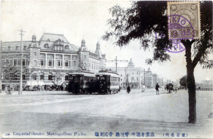 - Babasaki intersection, with the Tokyo Chamber of Commerce (left) and Imperial Theatre (center), c. 1910.