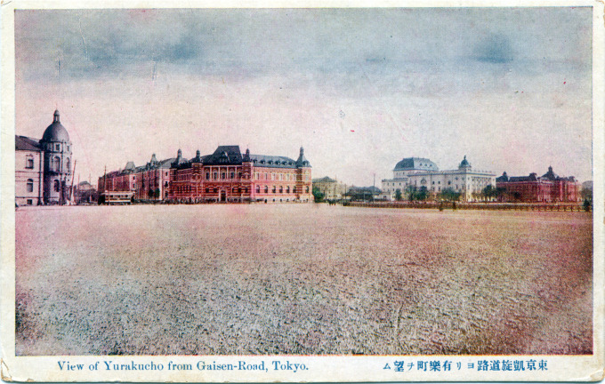 - View of Yurakucho from Gaisen Road, c. 1910. The Tokyo Chamber of Commerce building in on the right.