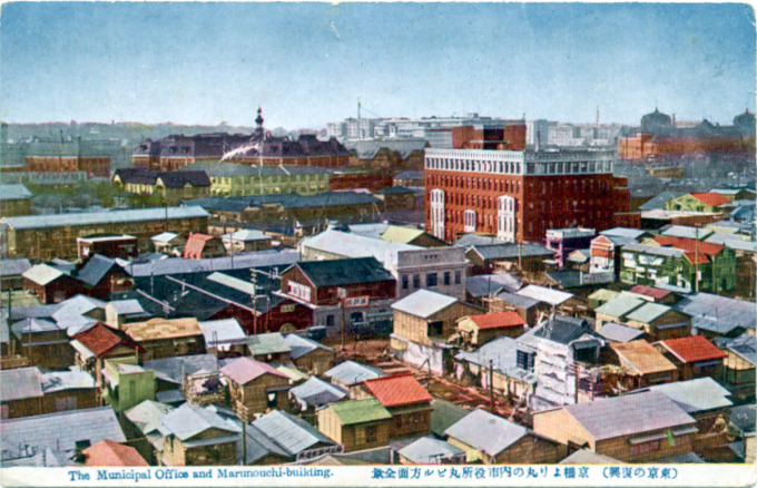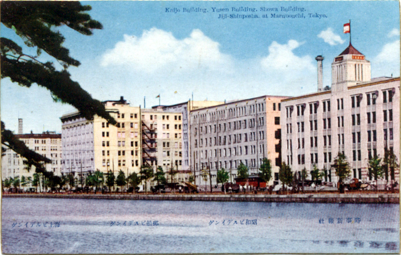 - Marunouchi business district, c. 1940. The Tokyo Kaikan is at center; to the left is the Meiji Insurance Co. building.