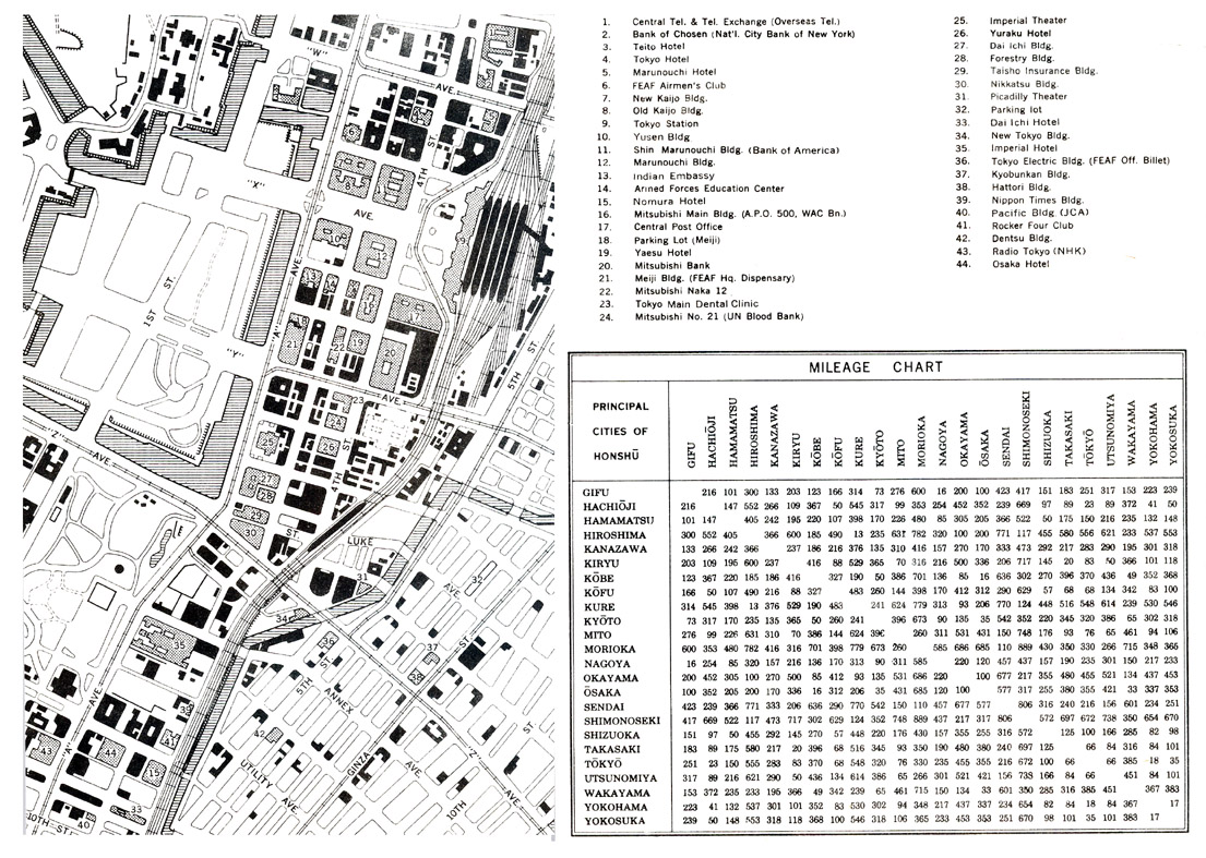 - A 1947 map and building directory of the Marunouchi and Ginza districts.