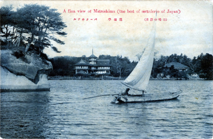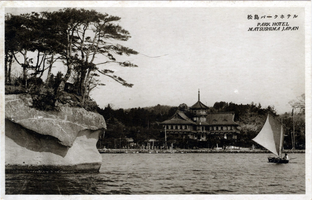 “The Matsushima Park Hotel is a handsome new structure combining Japanese charm with comfort and luxury desired by foreign travelers. English spoken. Superbly situated on the shore of the matchless Matsushima Bay, the most beautiful and celebrated of the Sankei, or Three Great Sights of Japan. No foreigner should leave Japan without seeing Matsushima and its wonderful island-studded bay, noted alike for its charm, its restfulness, and its fine fishing.