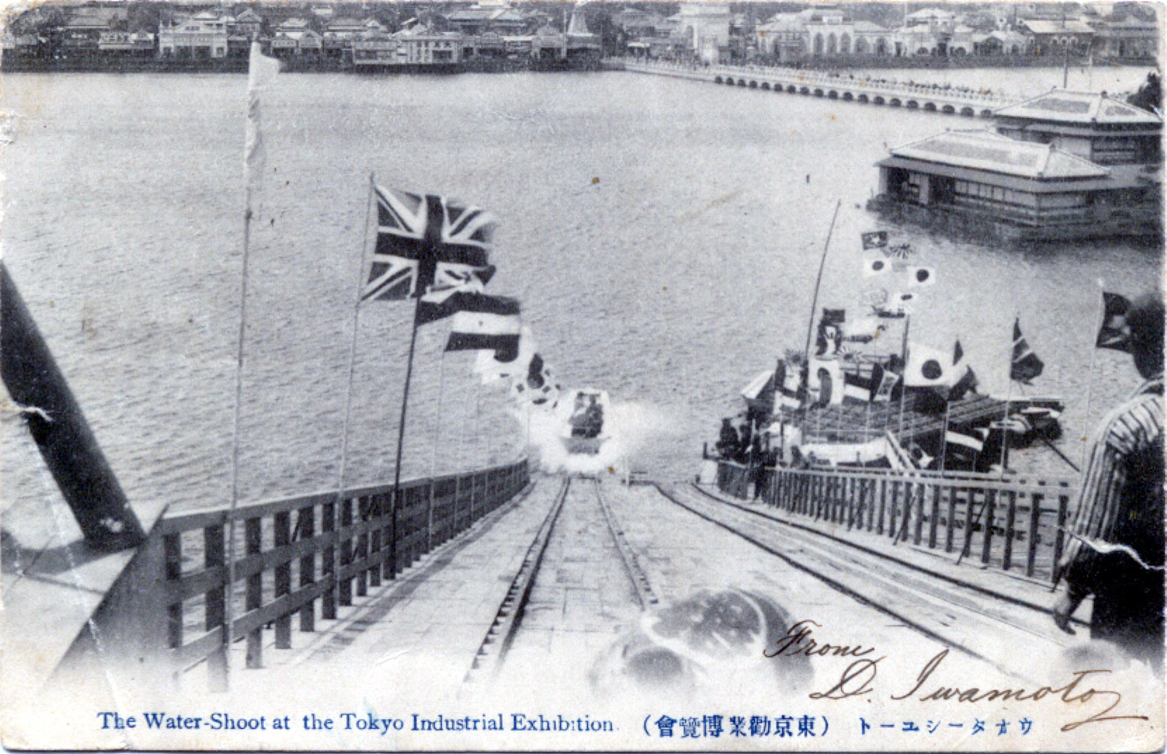 “The Water-Shoot at the Tokyo Industrial Exhibition”, 1907, a new amusement ride at the time also known elsewhere as the “Ship Slip”.