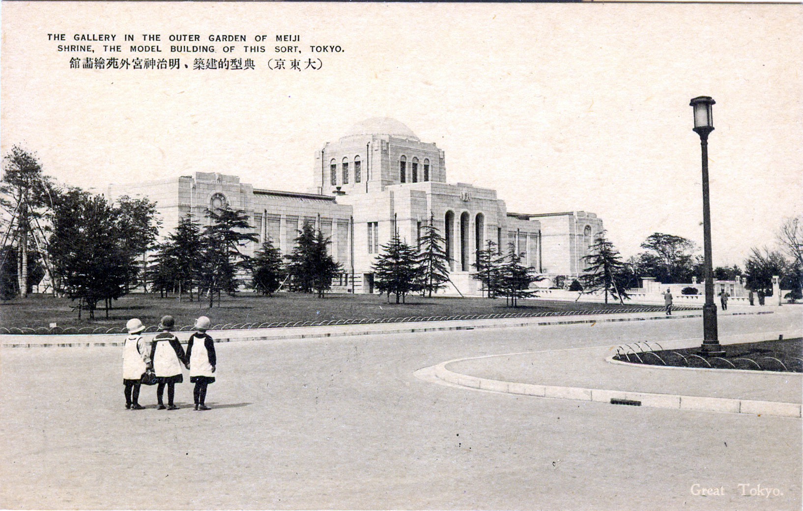 The Meiji Memorial Picture Gallery was completed in 1925 on the grounds of the Meiji Shrine Outer Garden [Meiji Jingu Gaien], between Aoyama and Sendagaya.